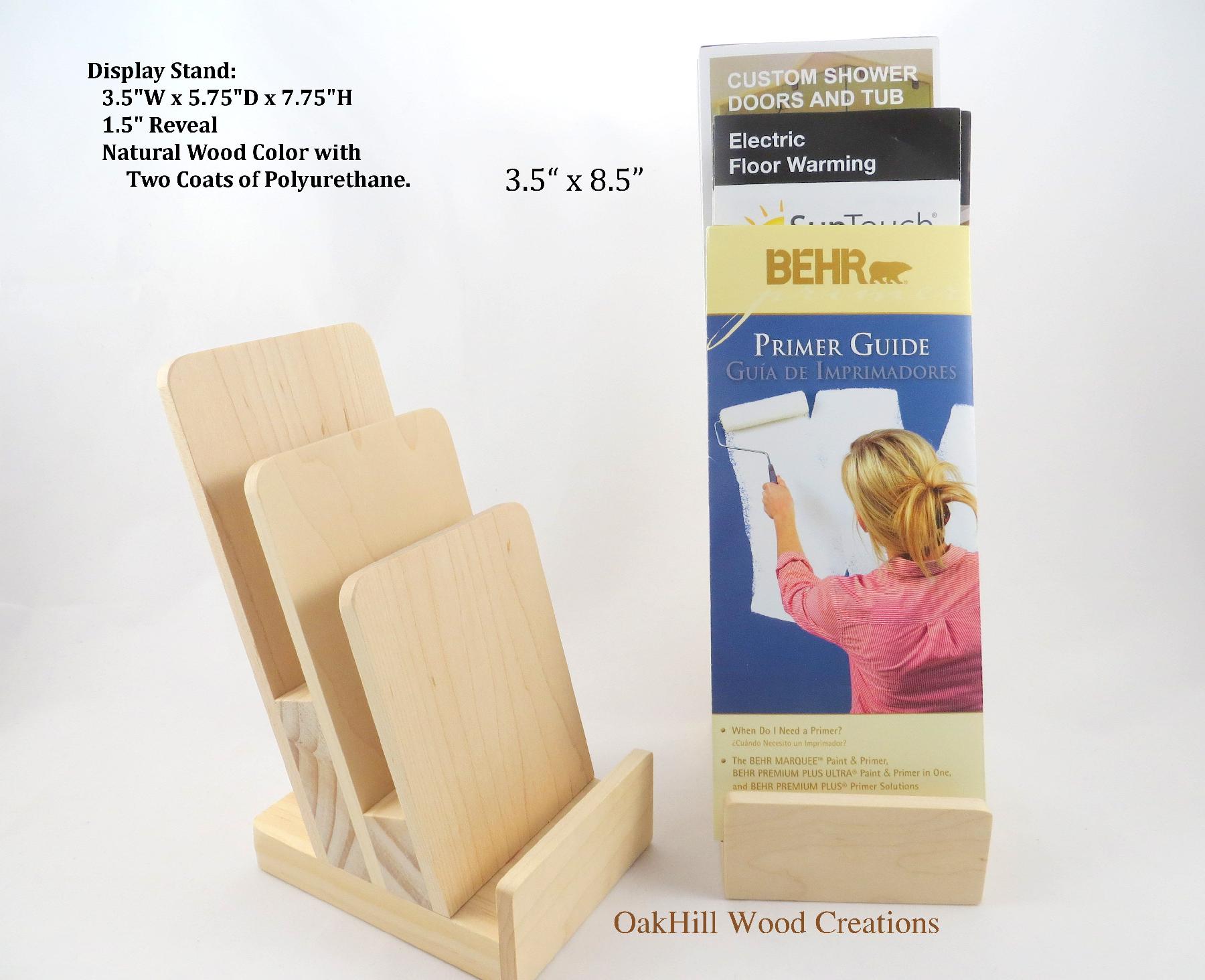 Wood 3-Tier Brochure Holder, Wooden Stand will provide support for a variety of sizes and quantities of Brochures both trifold and single style, Rack Cards, Pamphlets or Flyers.