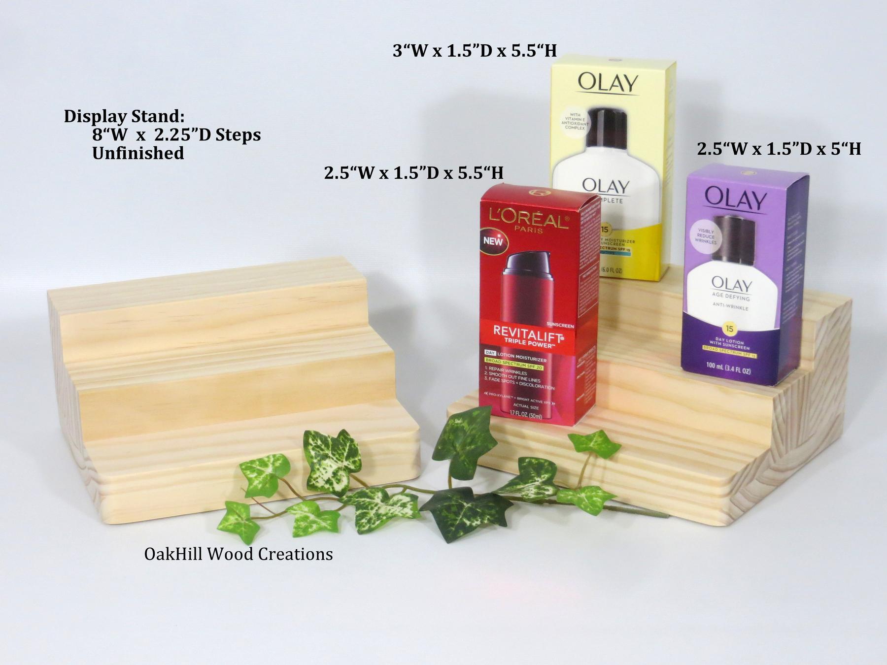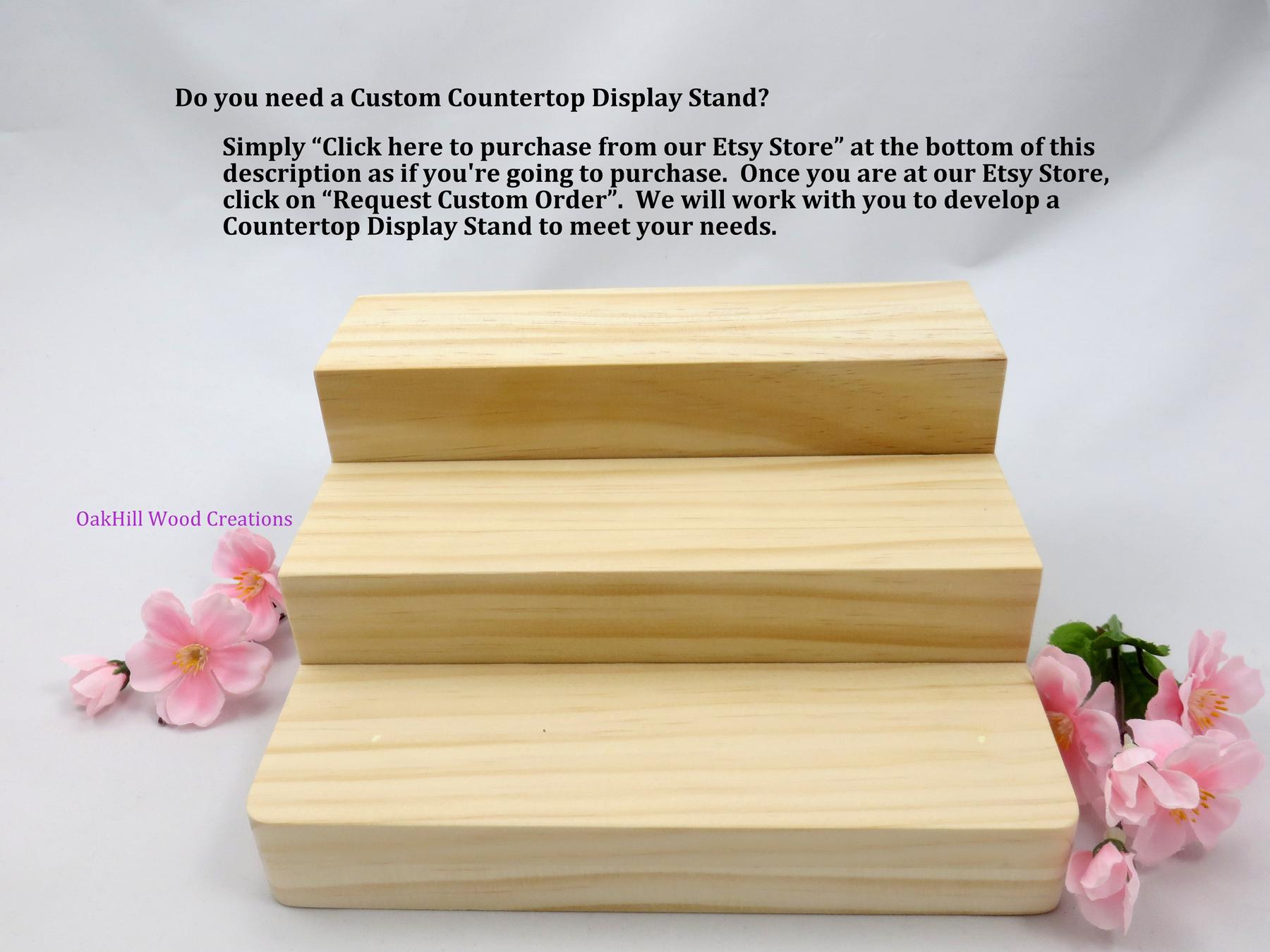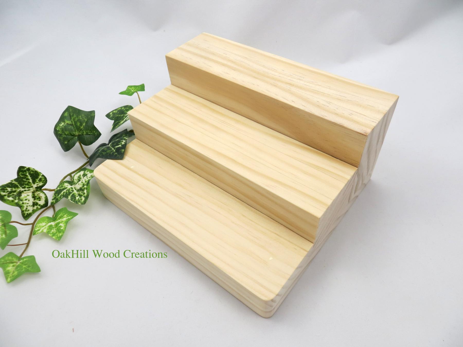 Wooden 3-Tier Display Stand, Bottle Display. This Display Stand is made from Select Pine, left unfinished, sanded smooth on all surfaces ready for you to stain, varnish, paint or leave a natural light wood grain. Ideal to add height and interest in the placement of your products at a Craft Fair, Farm Stand, Store Counter or Trade Show DisplayClick here to purchase from our Etsy store