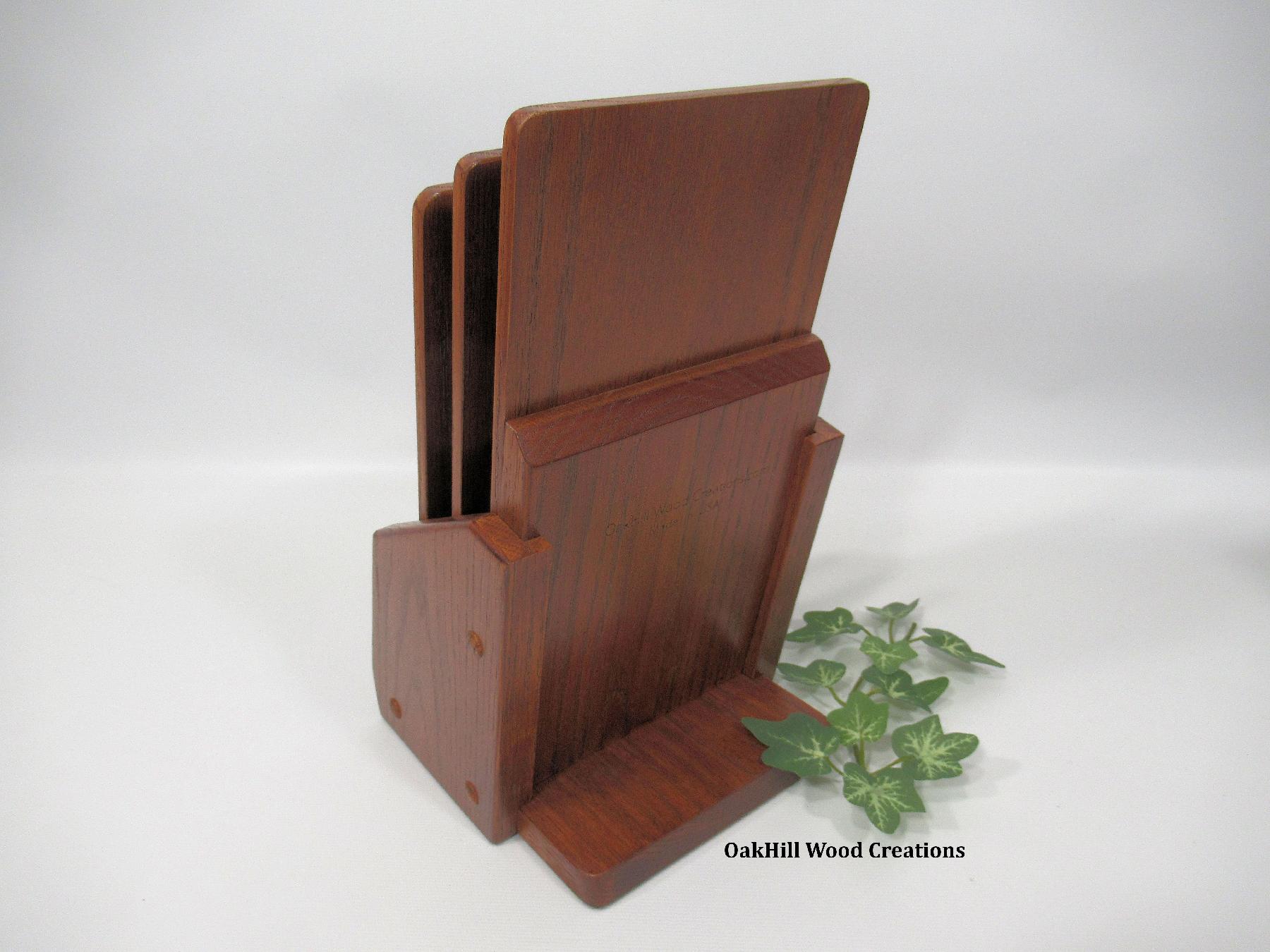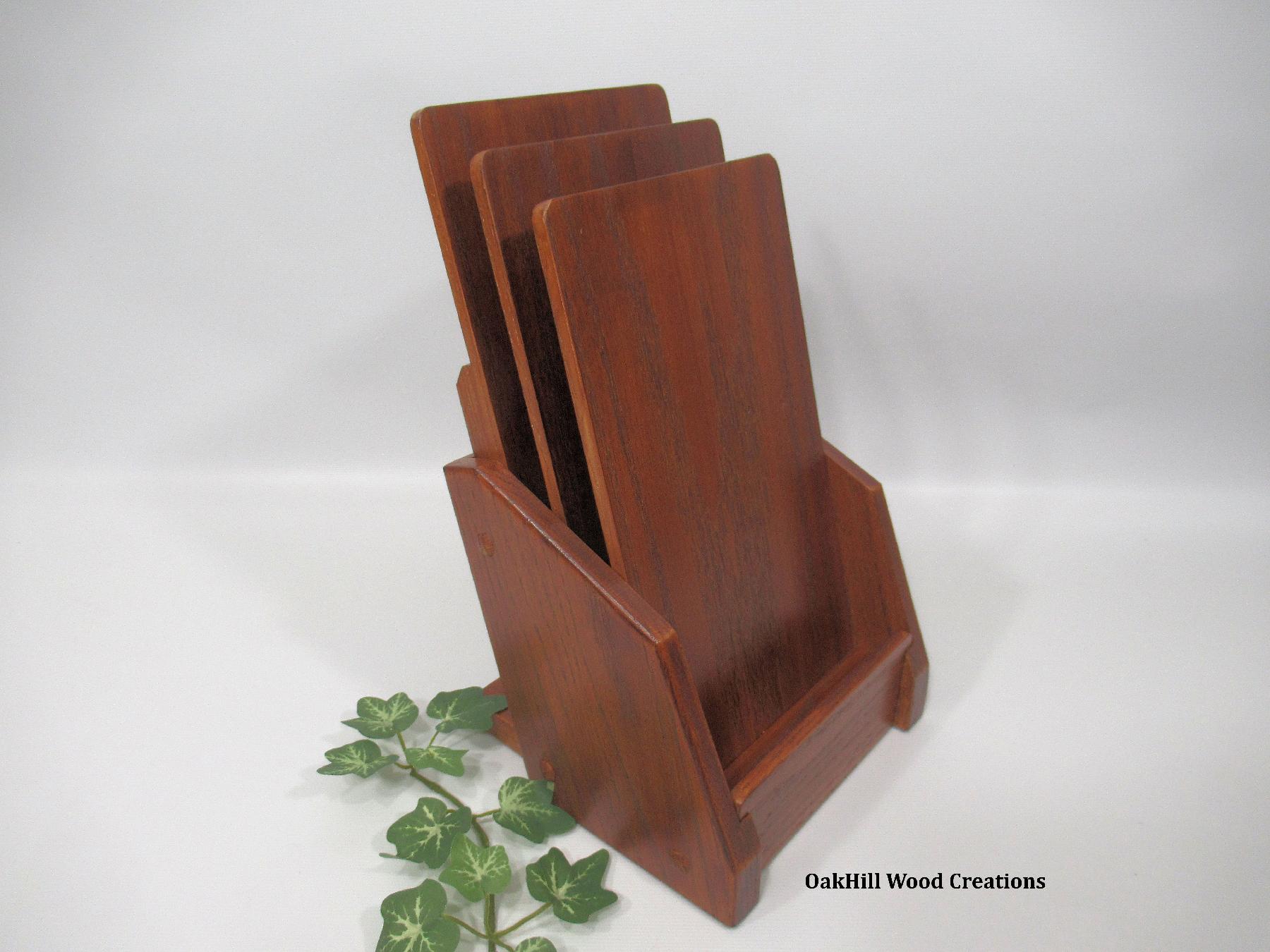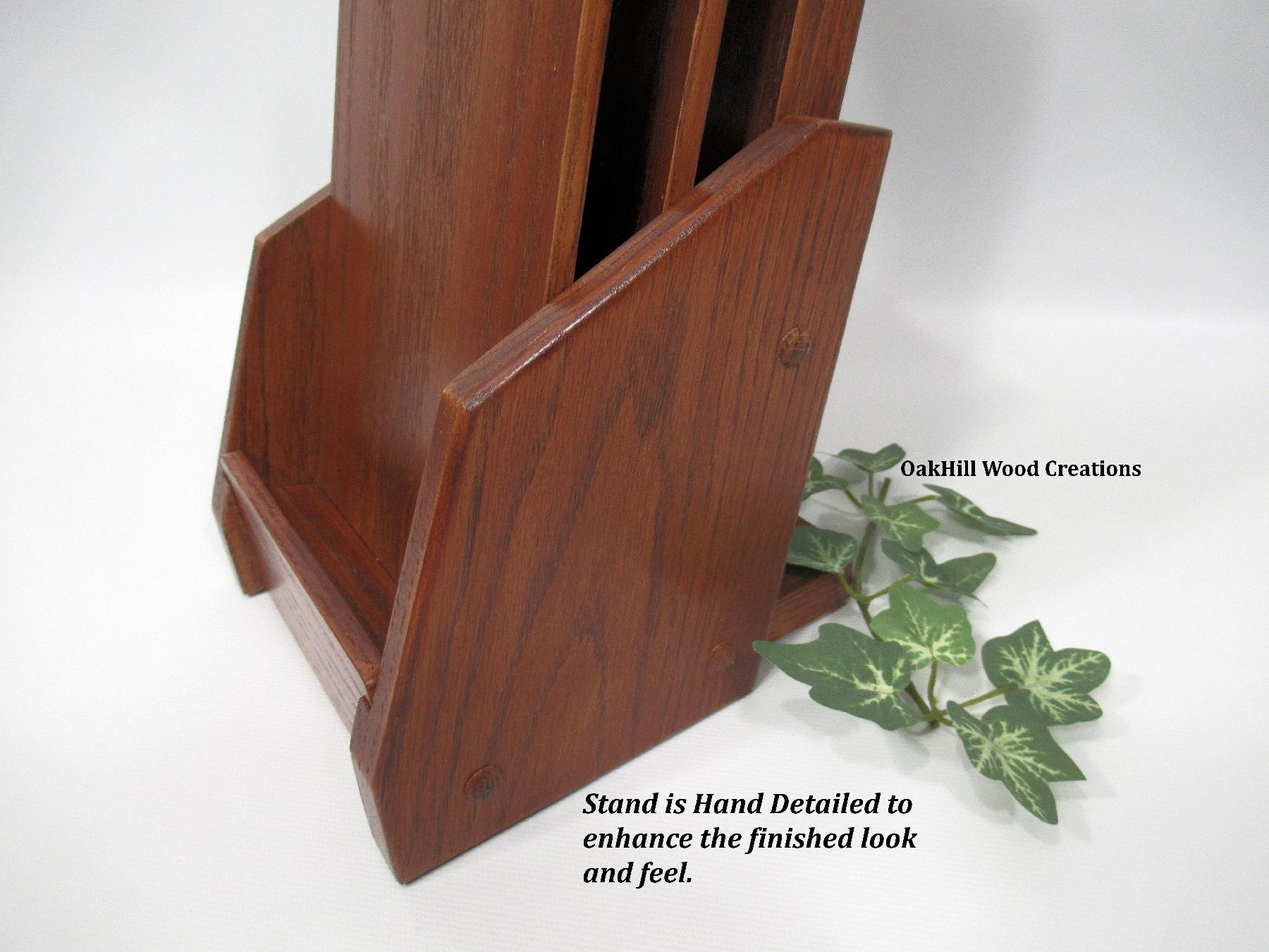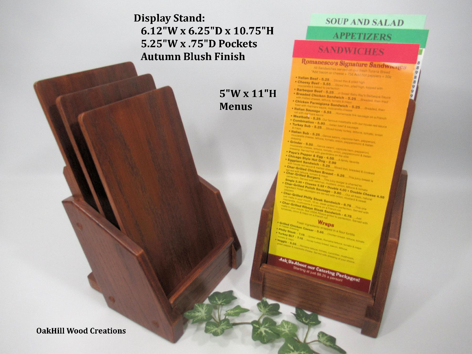 Showcase your take-out menus or promotional cards in style with this handcrafted solid oak display stand.