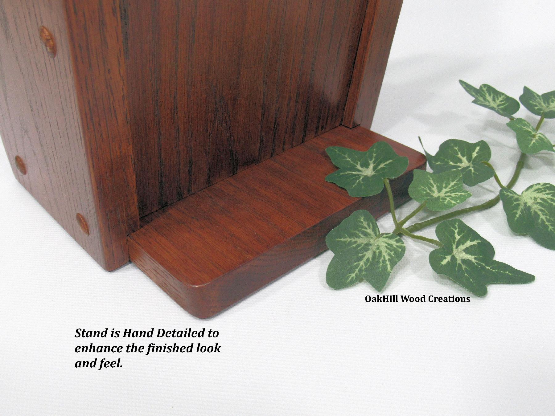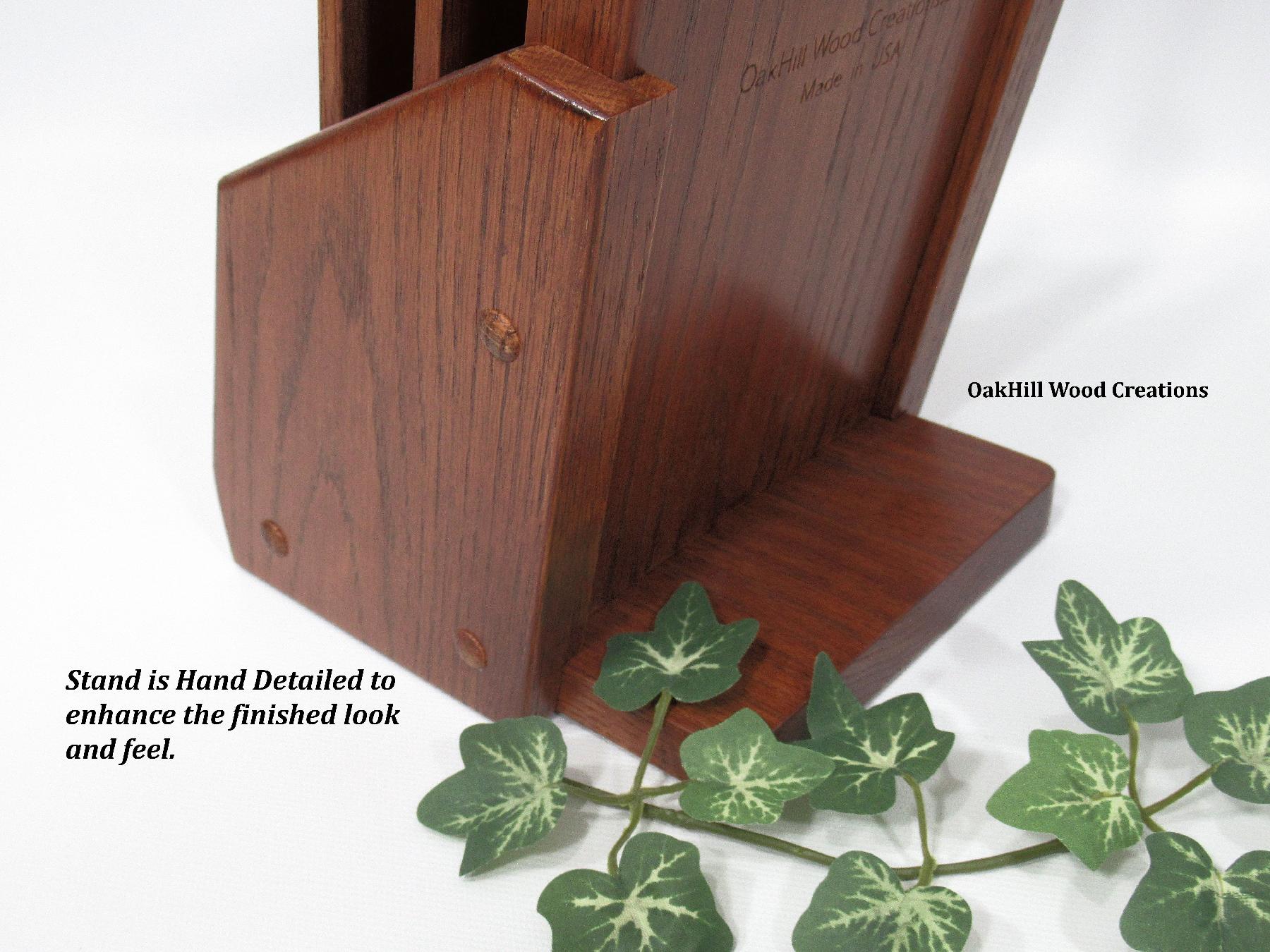 Crafted from solid oak wood, this holder is finished in a warm Autumn Blush stain and protected with two coats of high-quality polyurethane for lasting durability. Rubber pads on the base help prevent surface scratches.