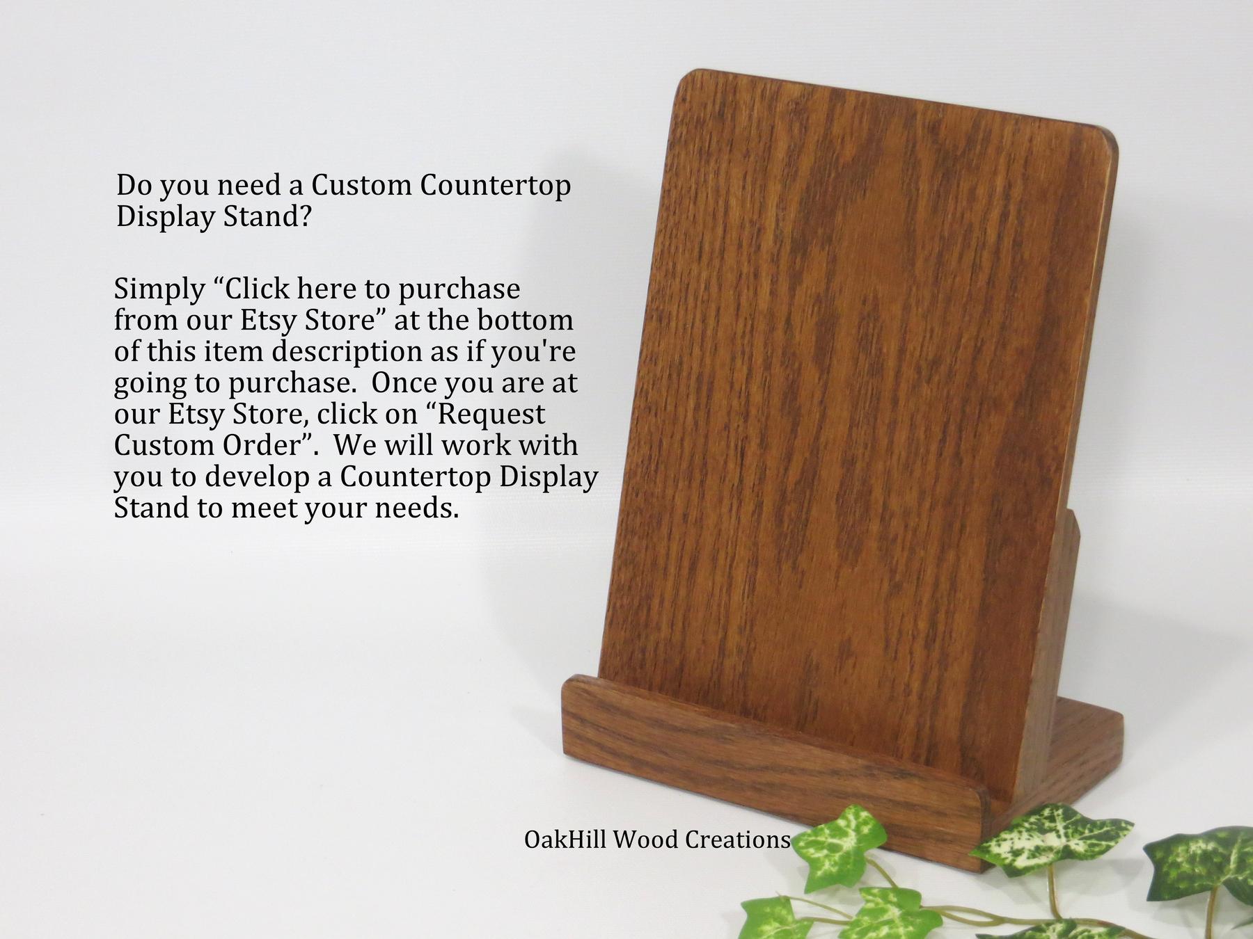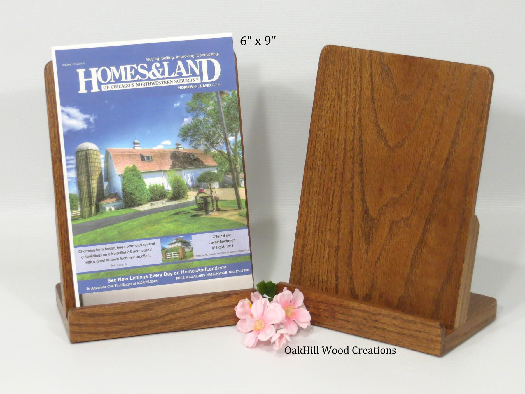 Brochure Display, Wood Countertop Stand, 6” x 9”. Our unique Wooden Countertop Brochure Stand will neatly display your Brochures keeping your tabletops and counters organized in the least amount of space. Make your countertops work for you!