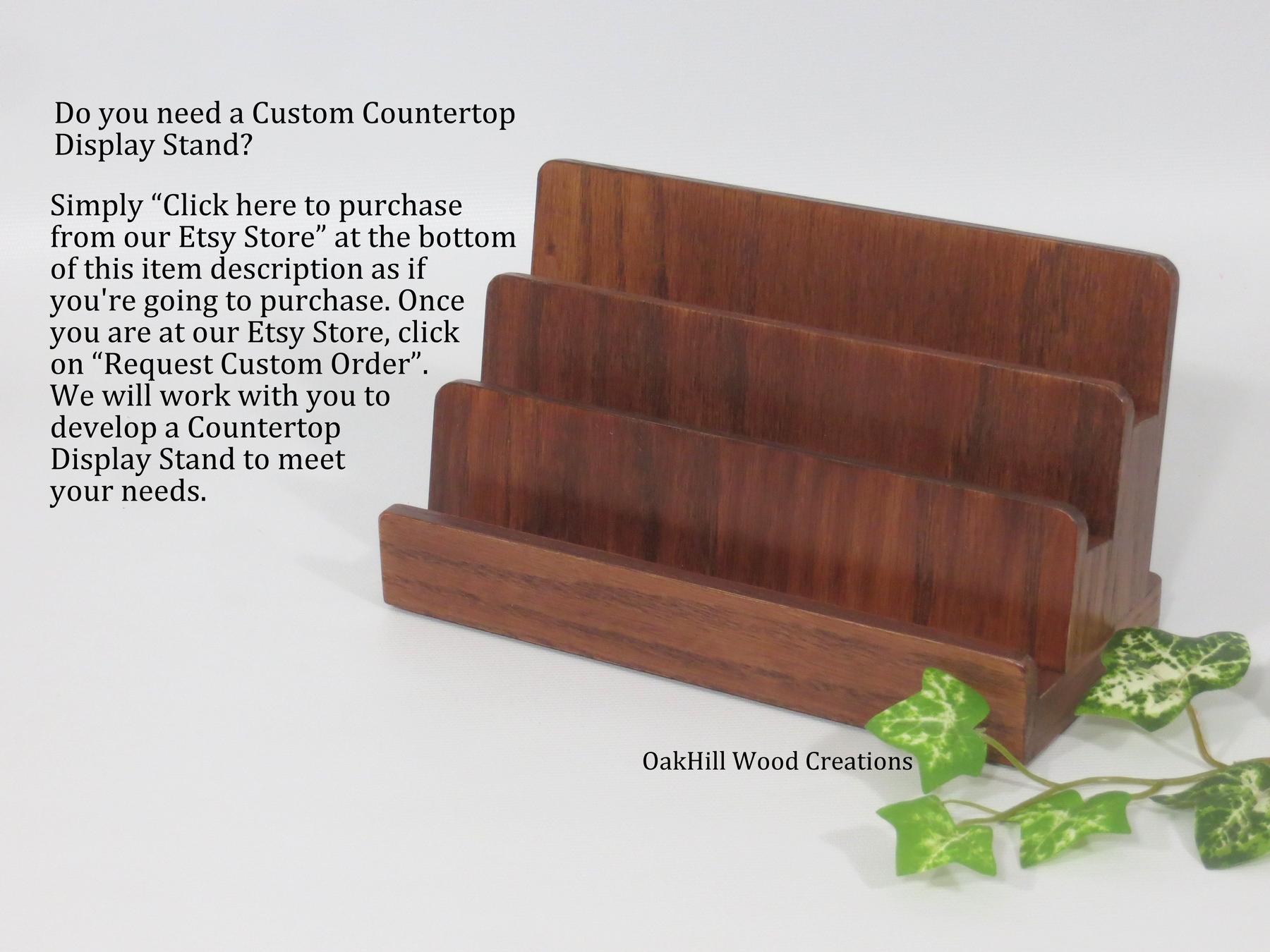 Made from solid American oak and finished in a warm Cabernet stain, this freestanding countertop holder keeps cards visible, organized, and easy to access for clients and visitors.