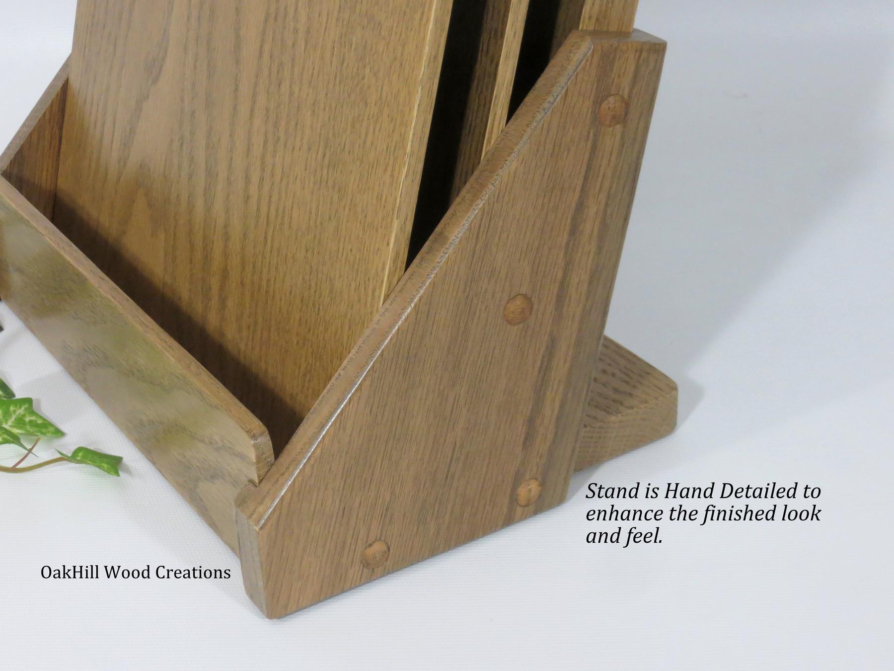 Showcase your brochures, sell sheets, or marketing materials in style with this handcrafted solid oak display stand.