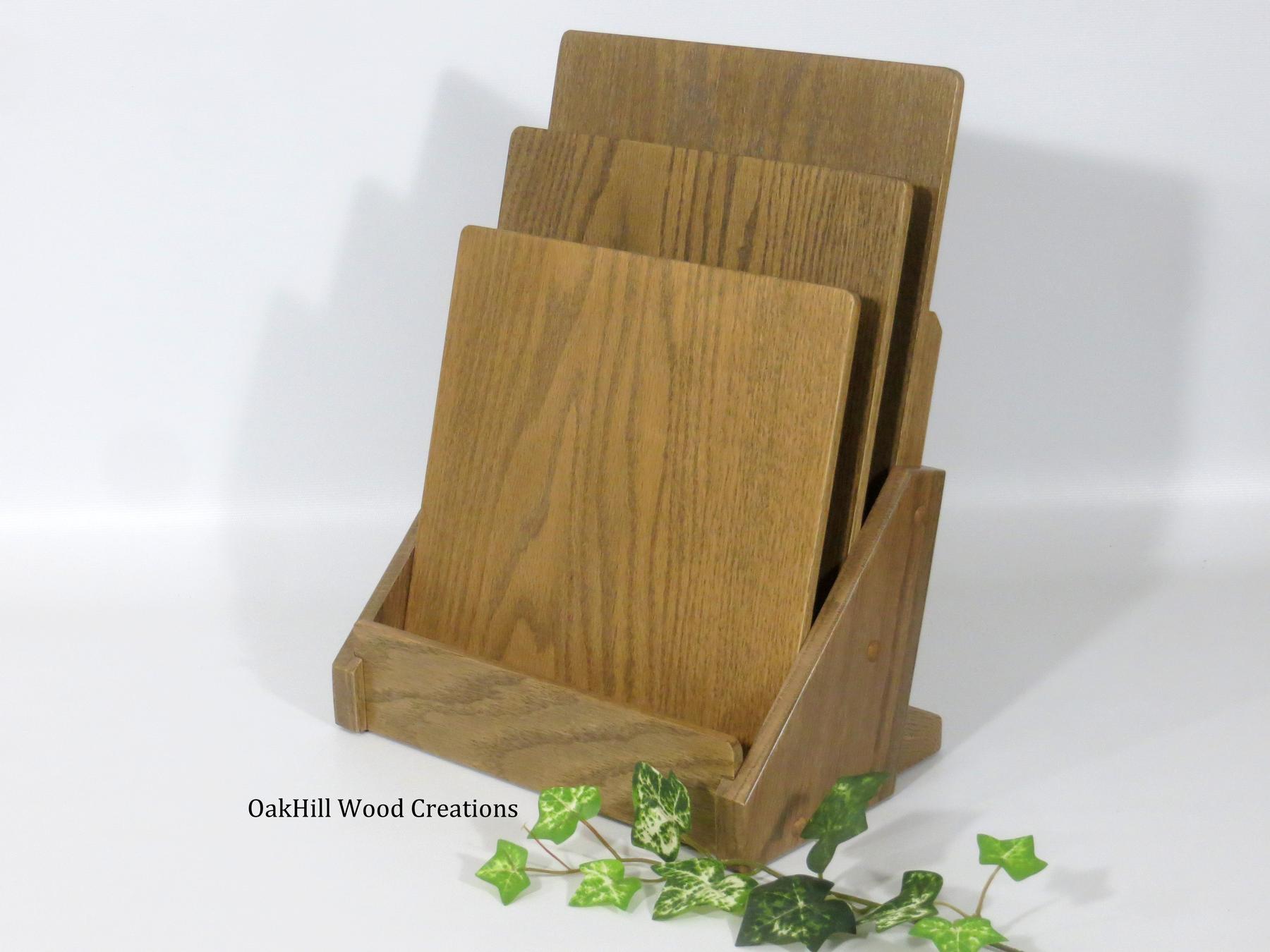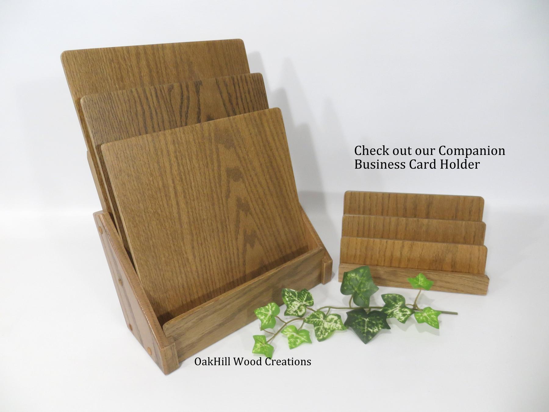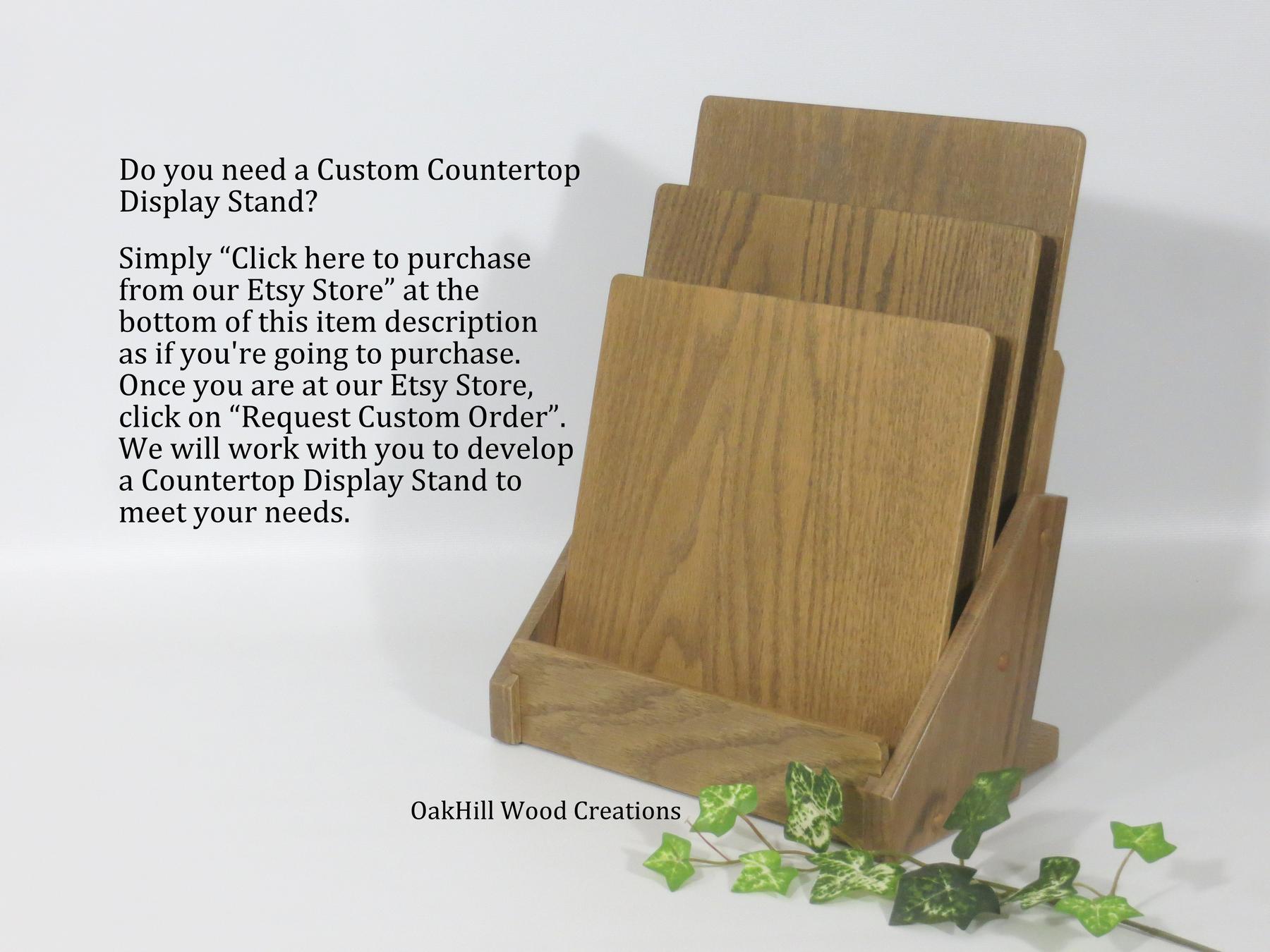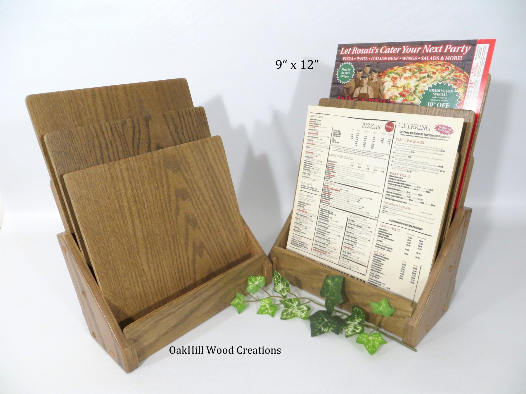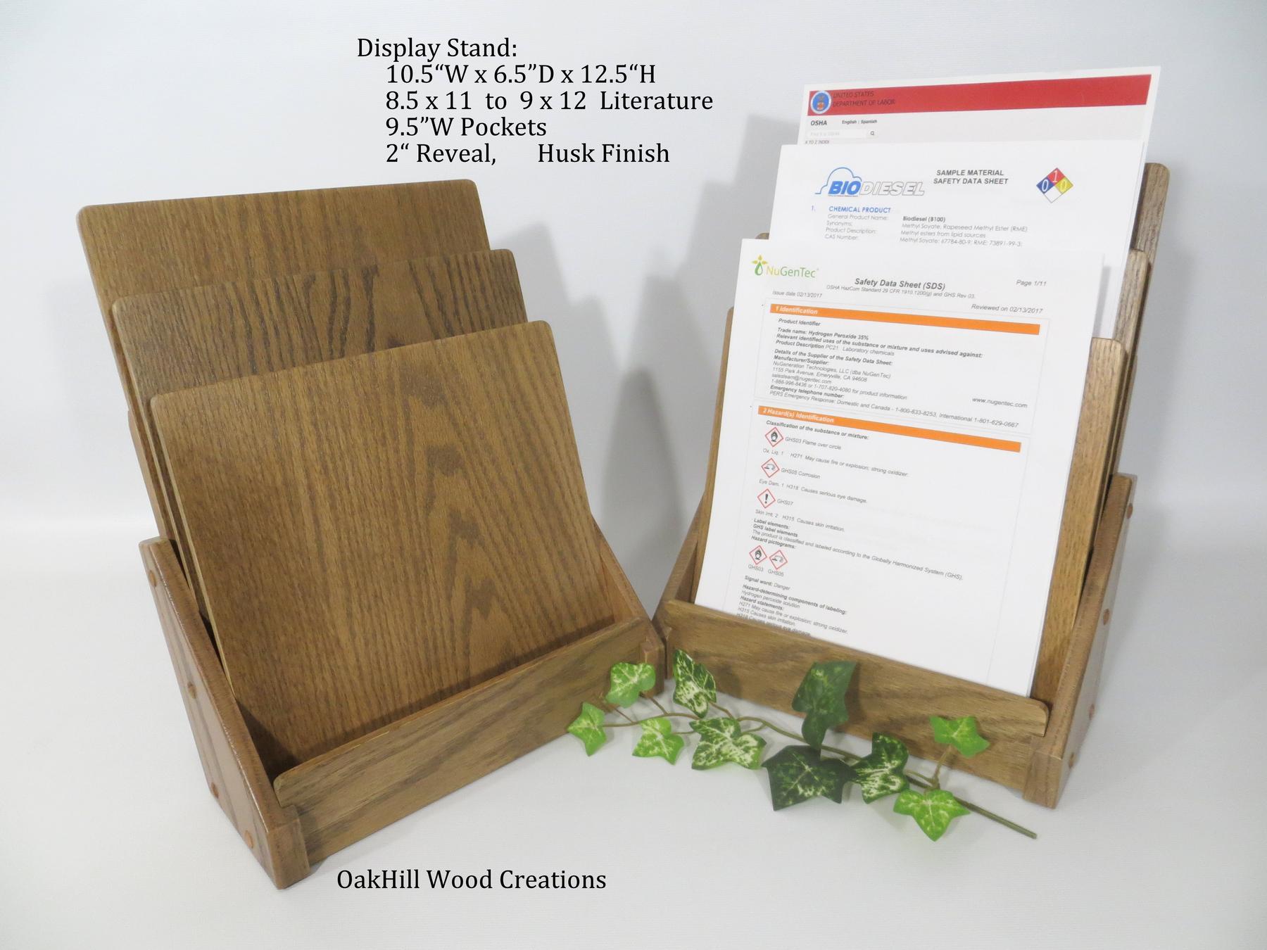 Showcase your brochures, sell sheets, or marketing materials in style with this handcrafted solid oak display stand.