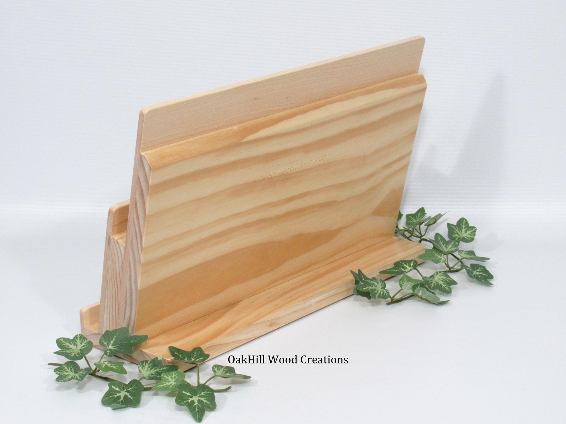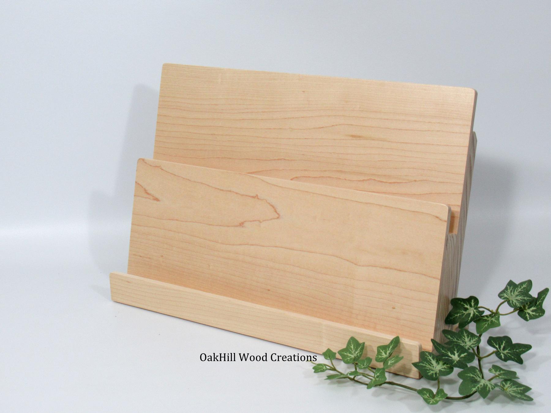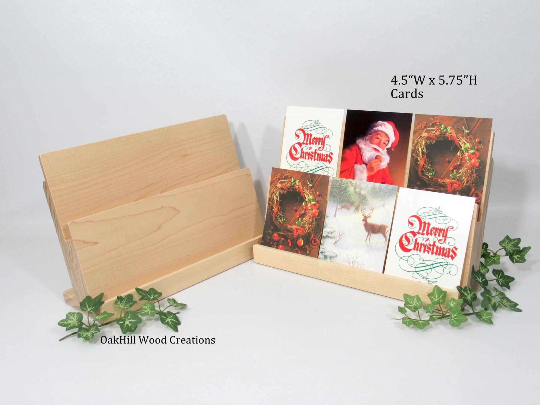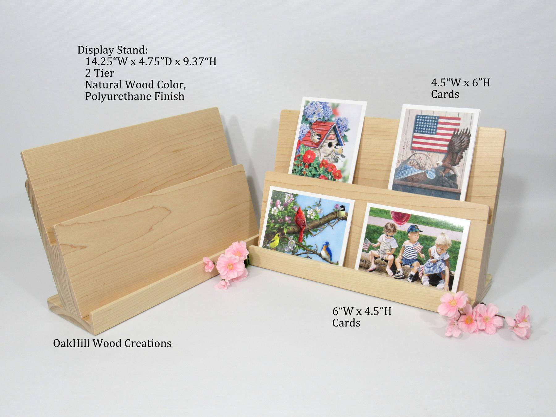 Showcase your cards and materials beautifully with this handcrafted 2-tier wood greeting card stand.