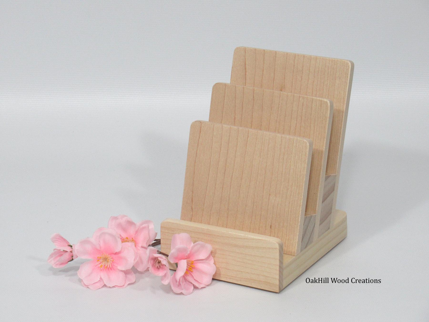 Handcrafted 3-Tier Wooden Display Stand for Recipe Cards, Photos, Rack Cards & Brochures