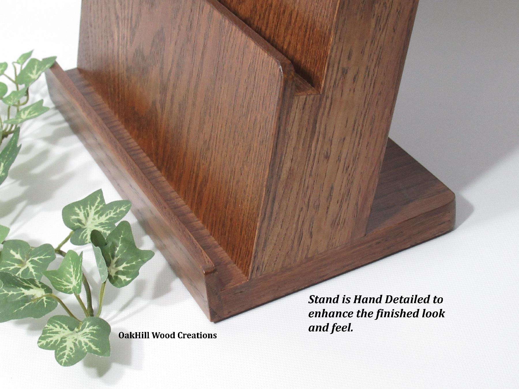 This handcrafted Solid Oak display stand is designed to beautifully present graded cards, making them the center of attention for friends, family, and fellow collectors. Its angled design not only enhances visibility but also saves valuable space—keeping your display cases, tabletops, and counters neat and organized.