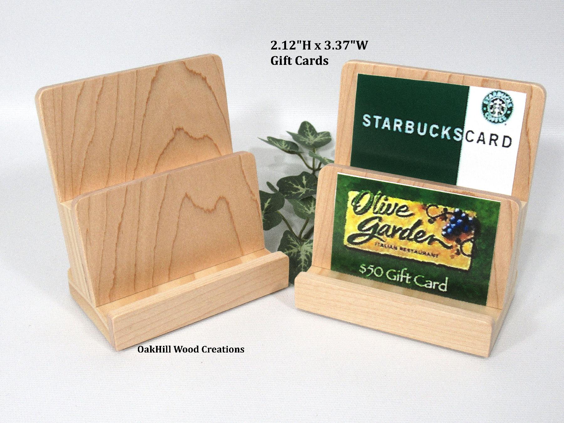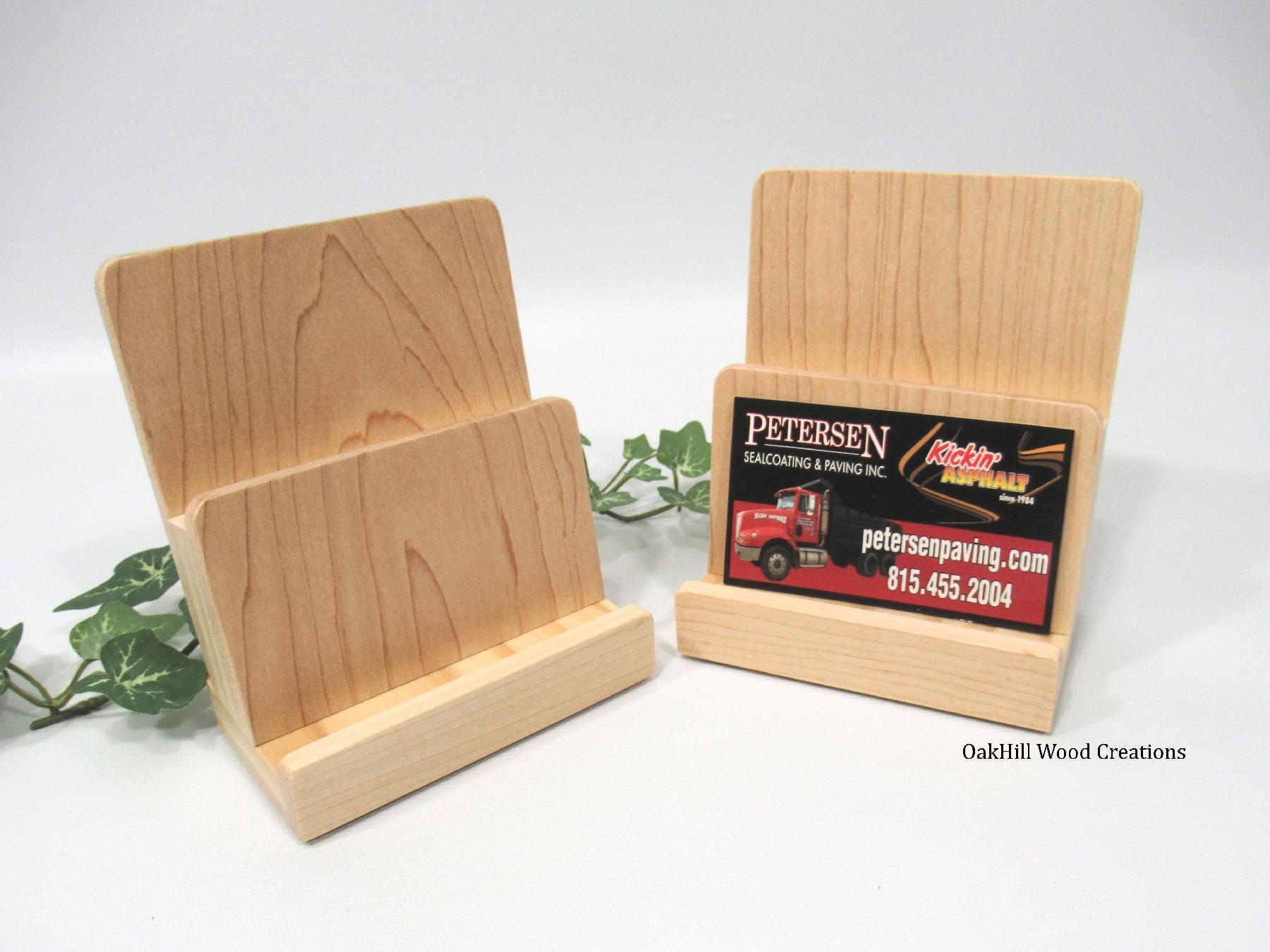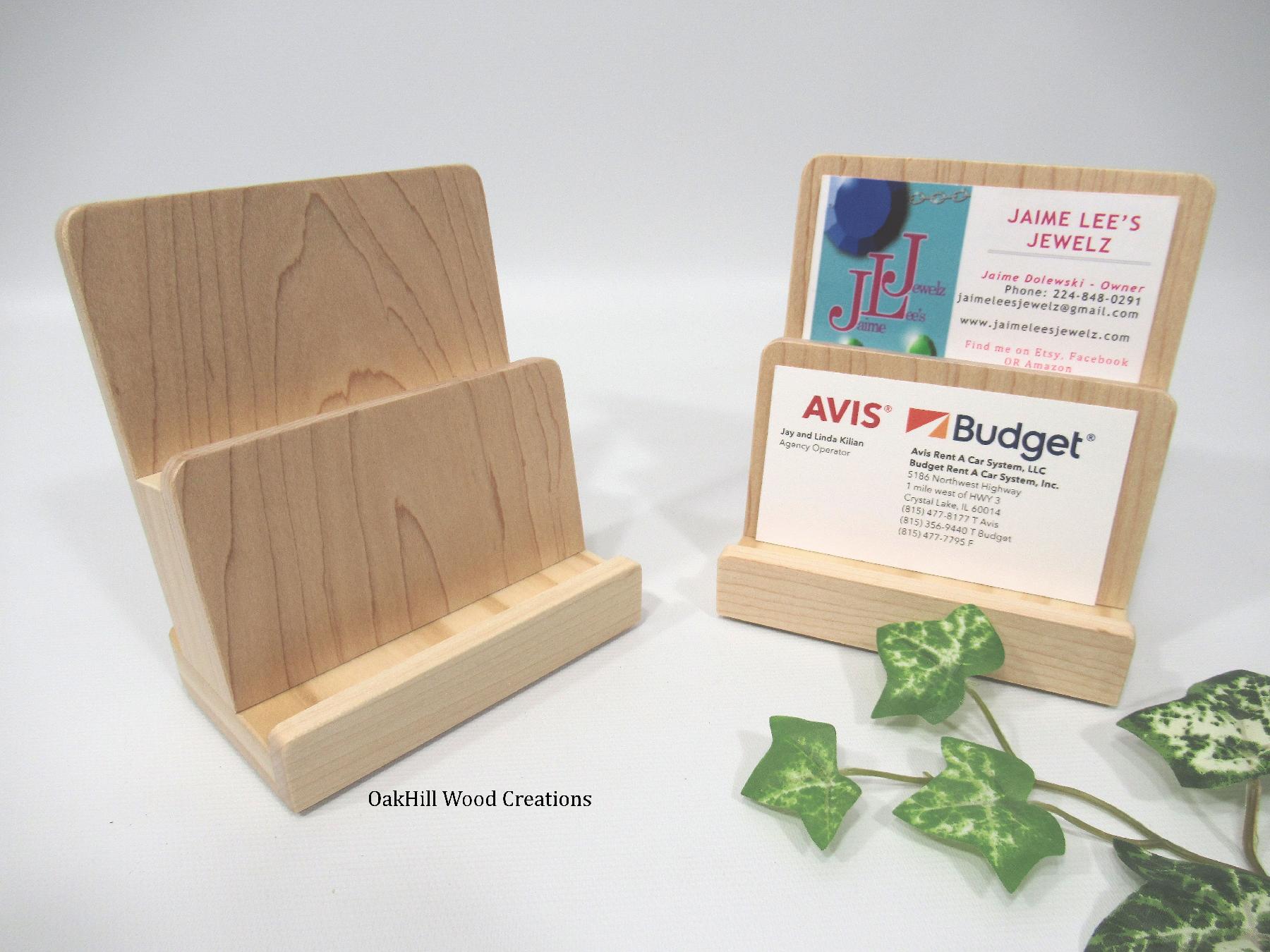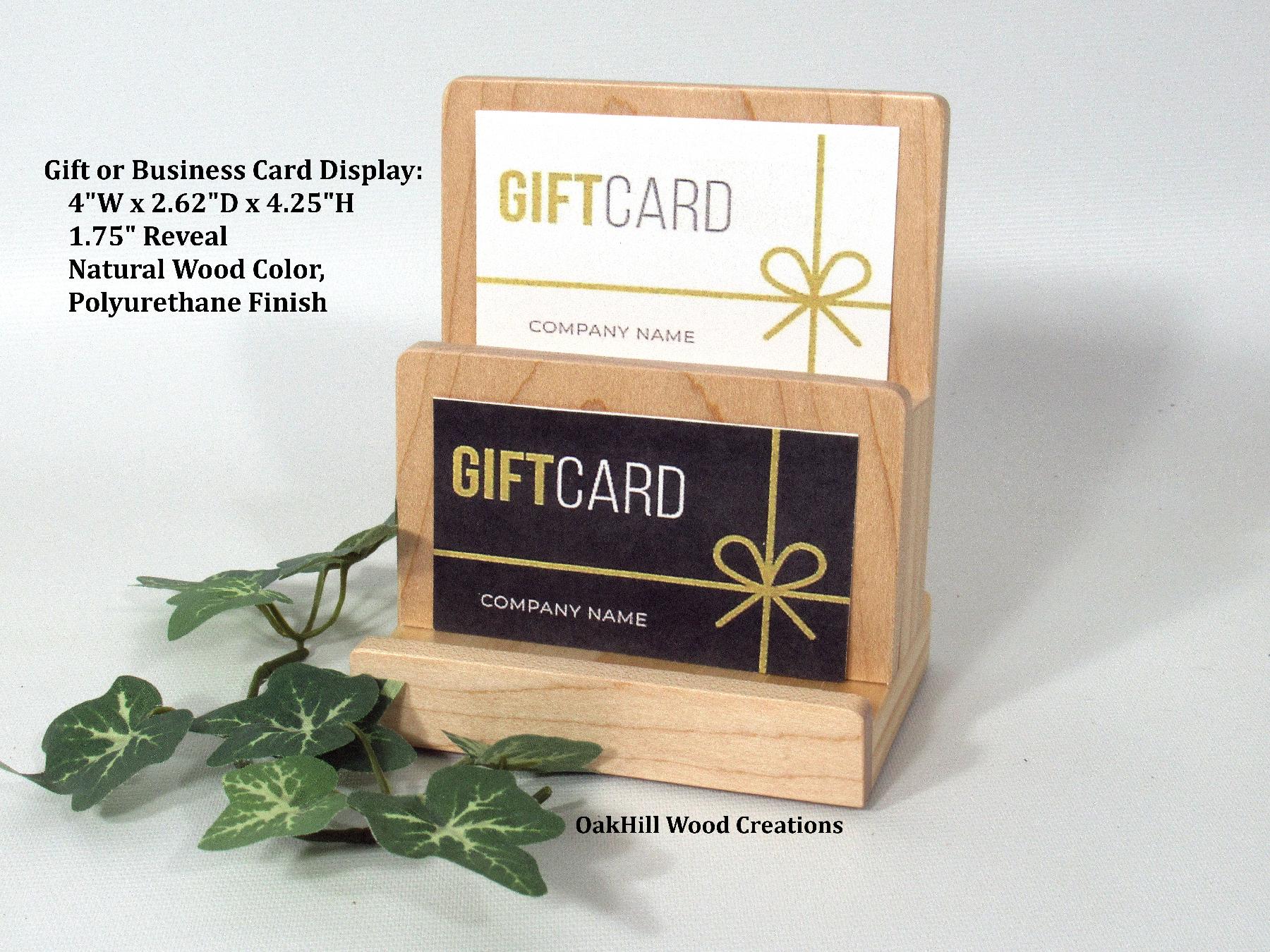 Handcrafted 2-tier wood business card and gift card display stand, perfect for retail counters, office desks, trade shows, and reception areas.