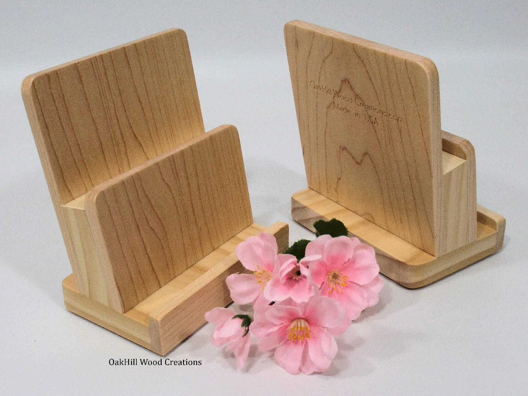 Showcase your business or gift cards with style using this handcrafted 2-Tier Wood Card Display Stand, designed for both function and elegance. Made from solid Hard Maple and Select Pine, this compact yet eye-catching display blends seamlessly into any professional environment — from reception desks and retail counters to trade show booths and event tables.