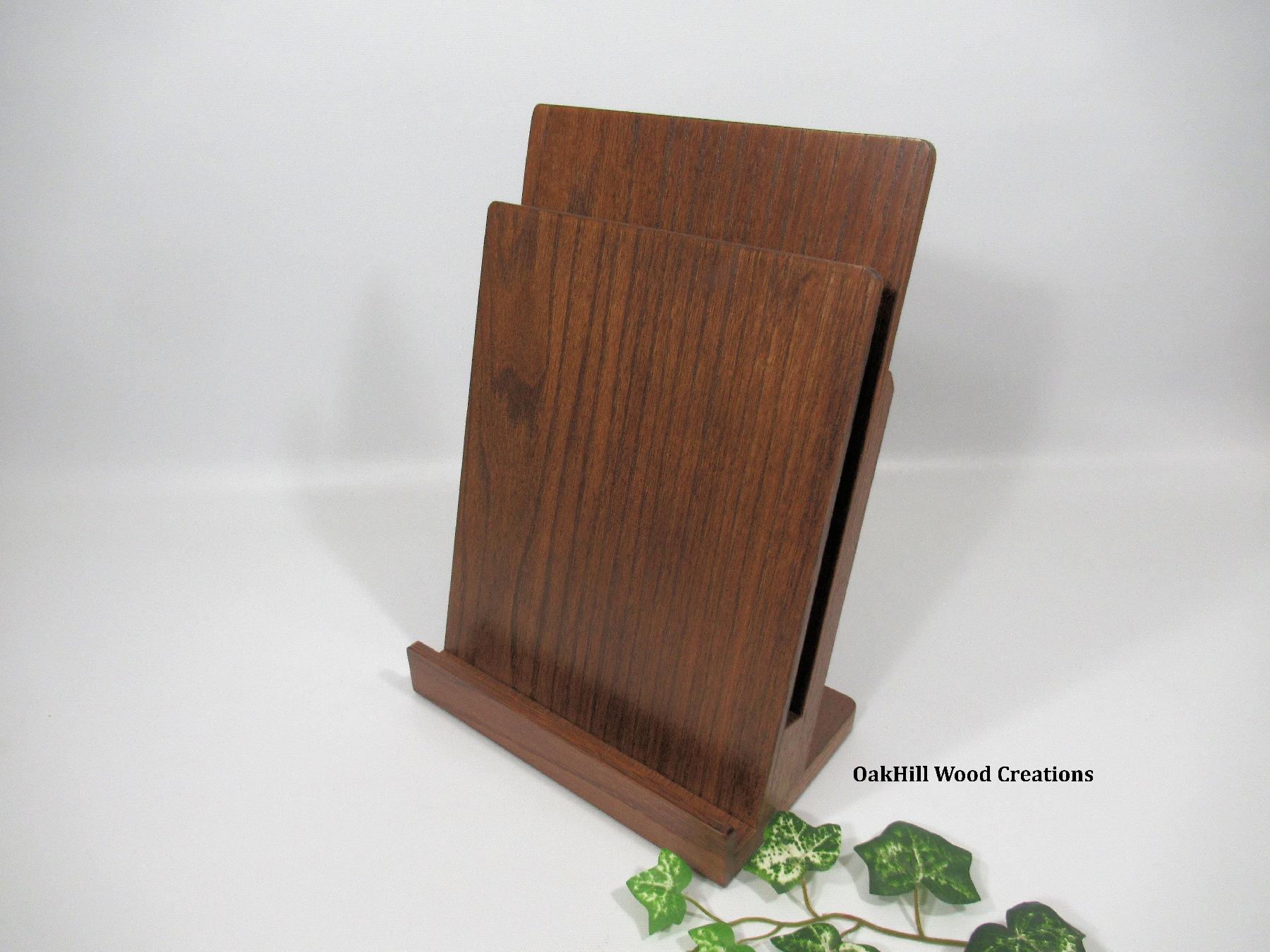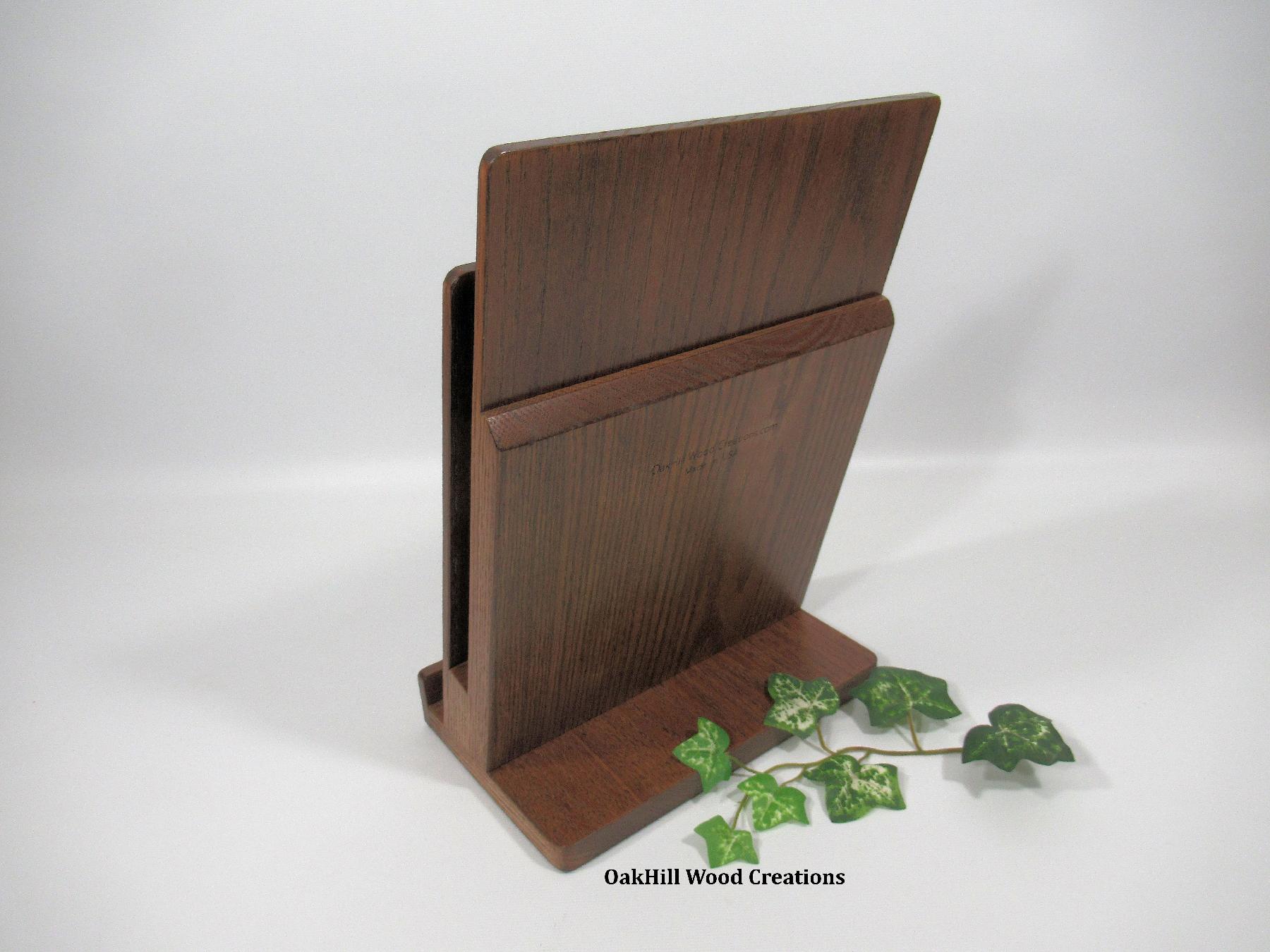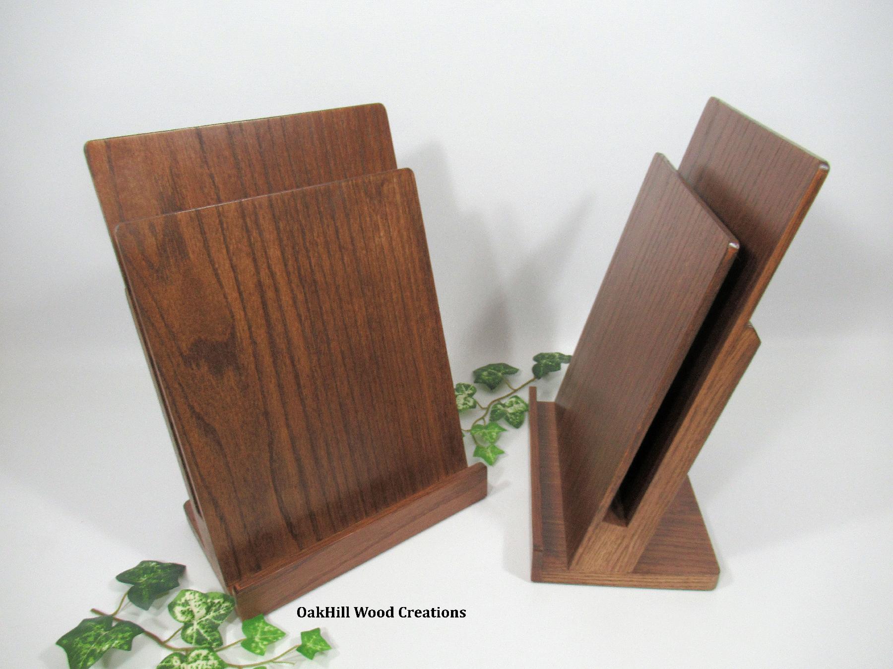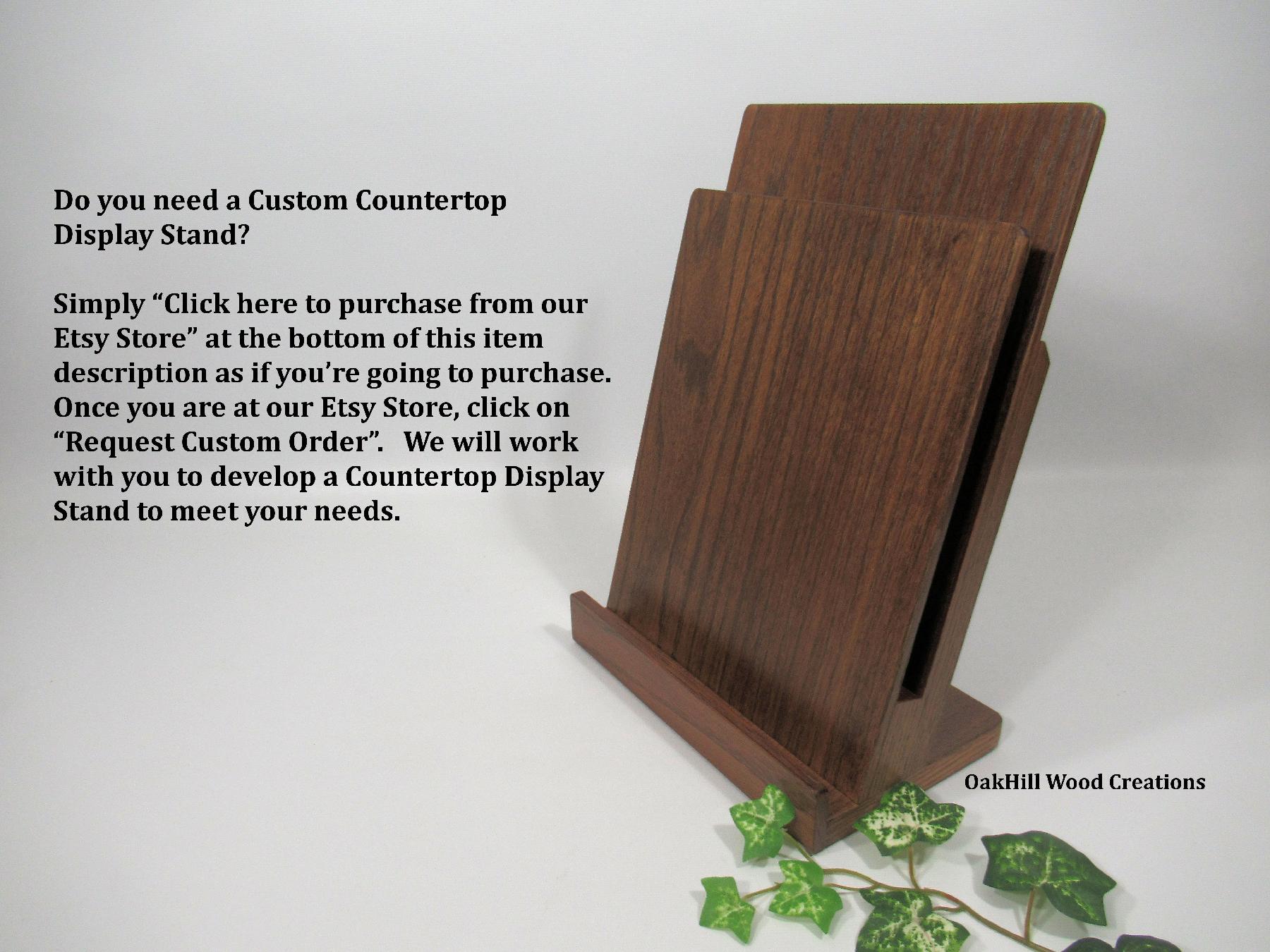 Showcase your brochures and marketing materials with this handcrafted Solid Oak 2-Tier Wooden Countertop Display Stand.