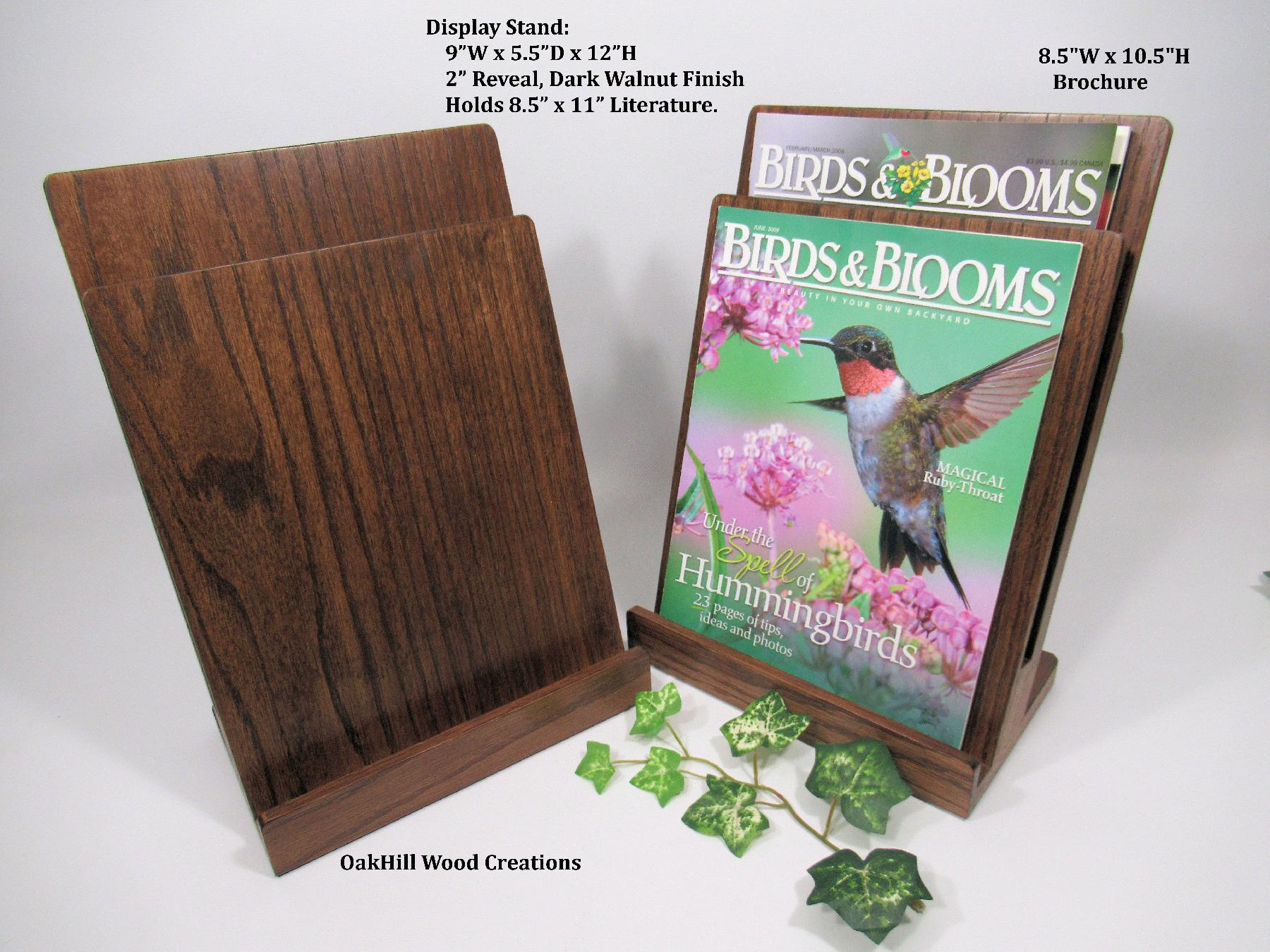 This Wooden Brochure Holder is designed to neatly organize and beautifully present standard 8.5” x 11” brochures, sell sheets, and advertising literature. Each tier features a ¾” deep opening with a 2” reveal, allowing your materials to remain visible and easy to access. The 9” overall width creates a clean ¼” Dark Walnut border on both sides of your brochures, giving your display a framed, professional appearance that naturally draws attention.