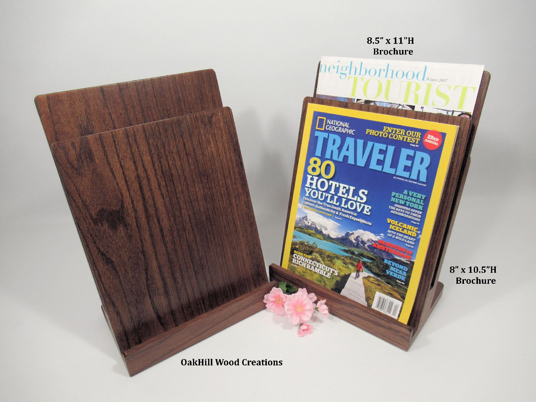 Solid Oak 2-Tier Wooden Brochure Holder for 8.5x11 Literature