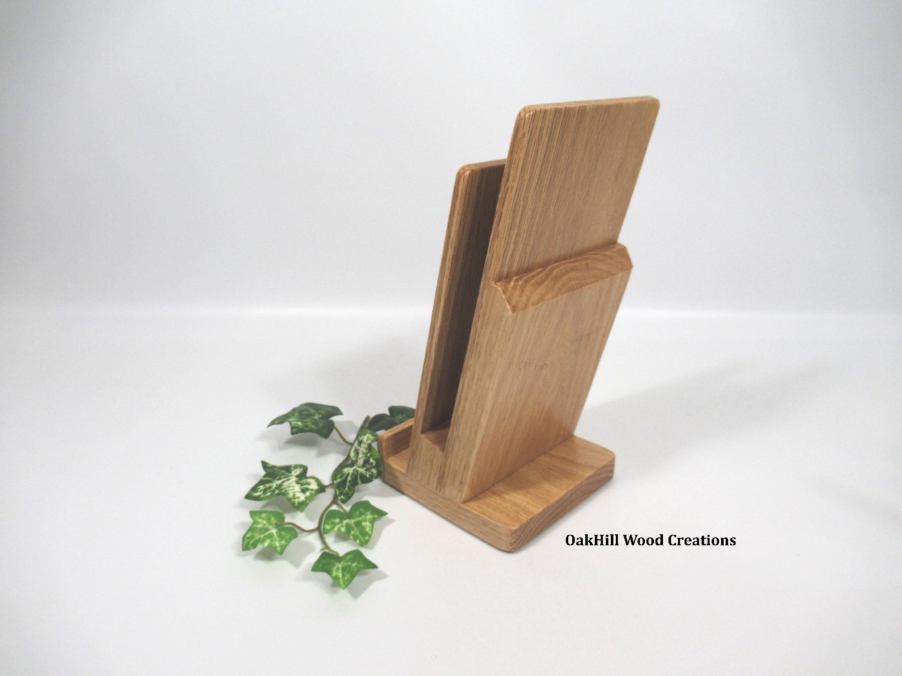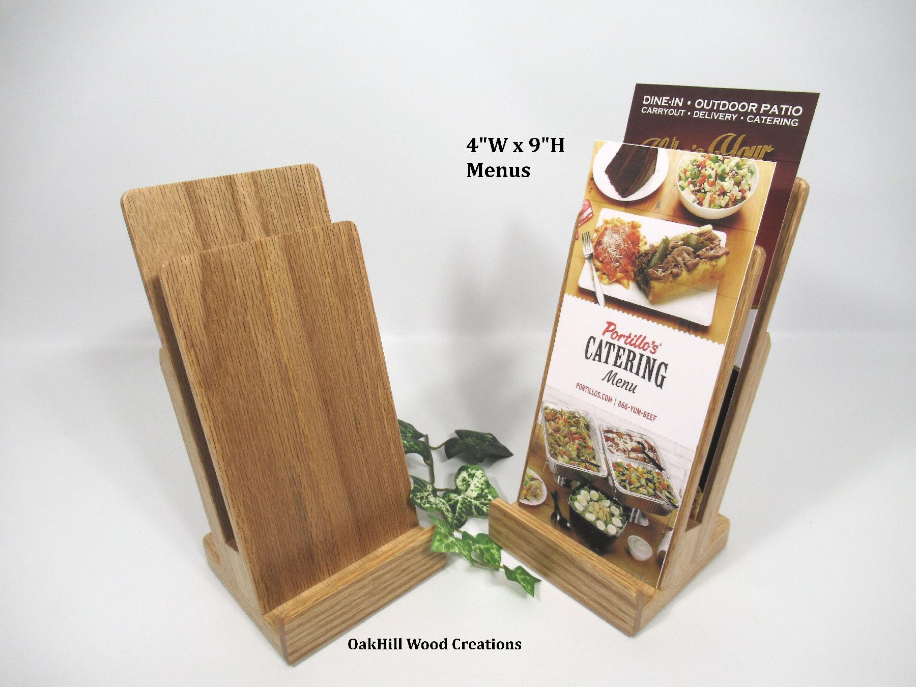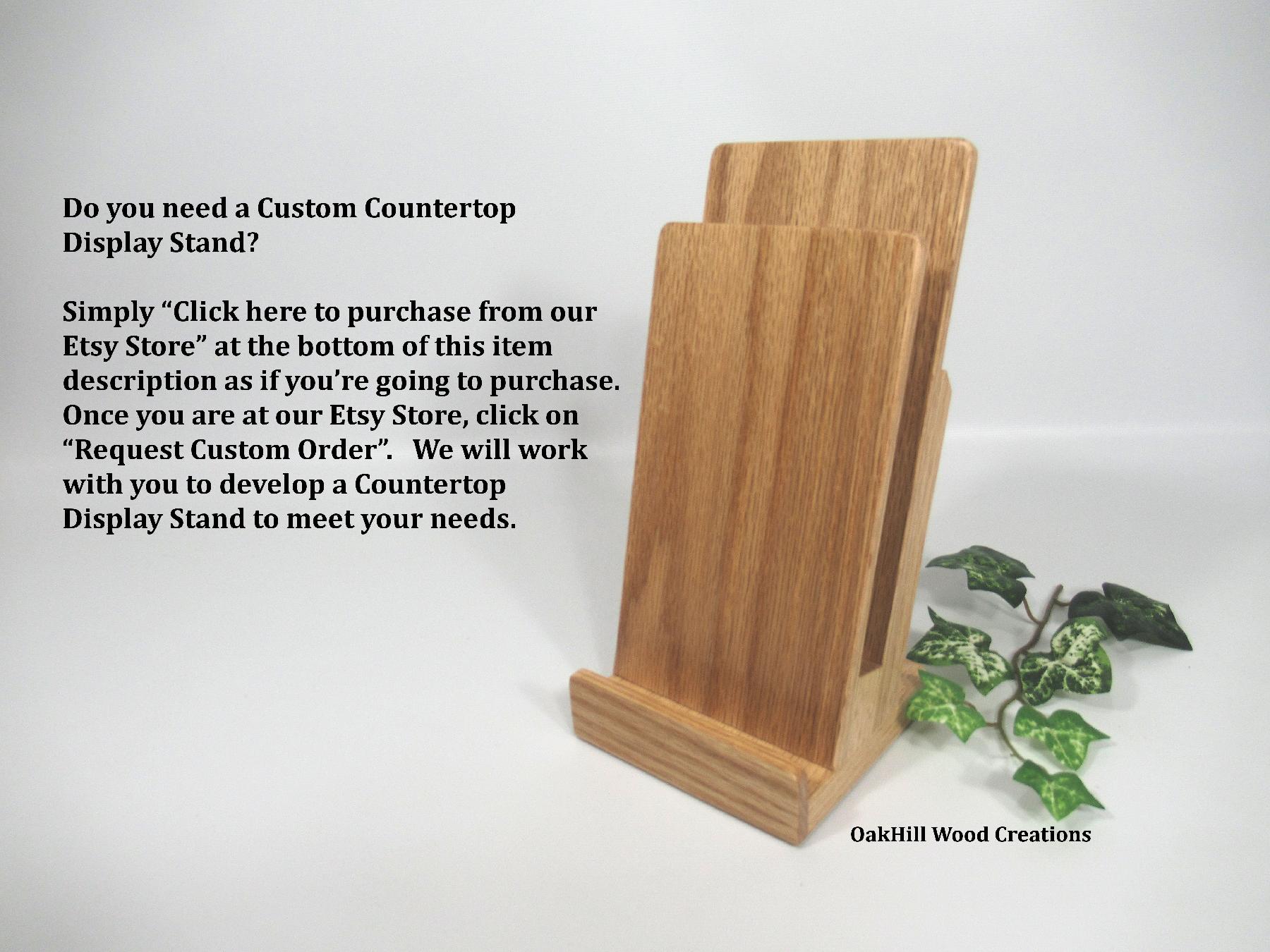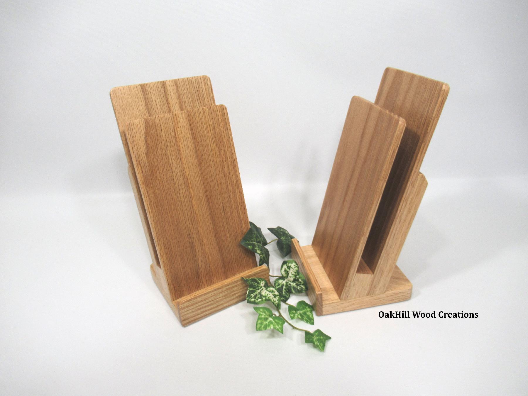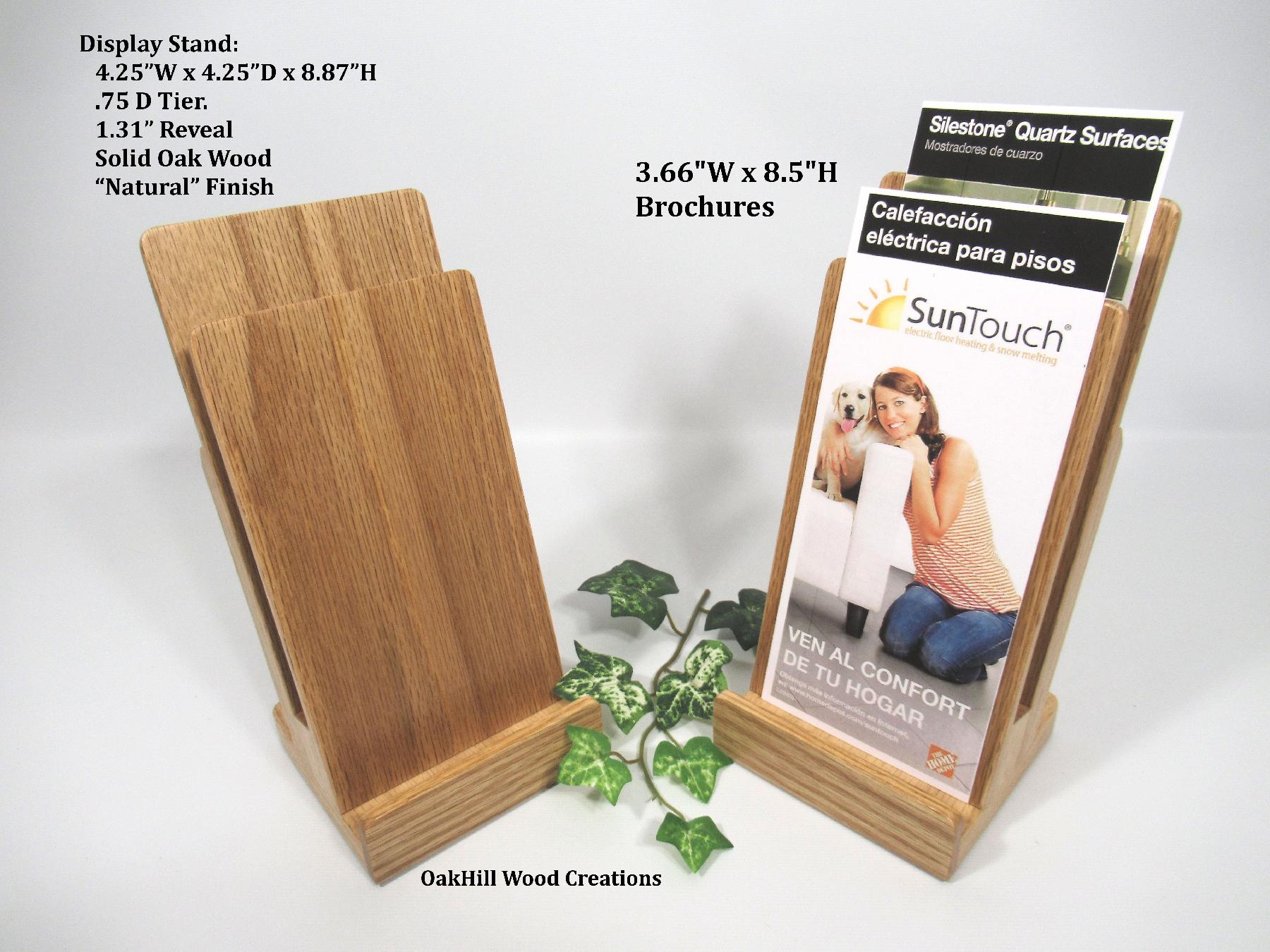 Showcase your brochures with professional style using this handcrafted Solid Oak 2-Tier Wood Brochure Holder.