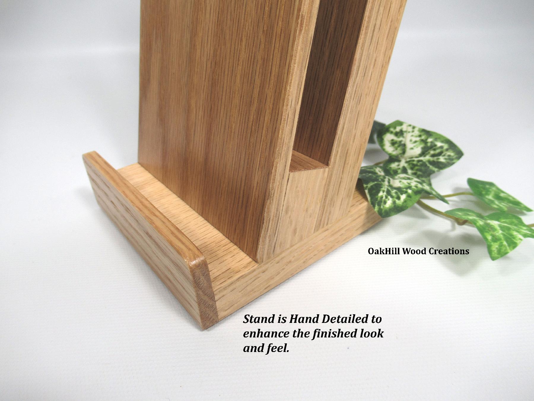 Precision-crafted from Solid American Oak, every surface is sanded smooth, finished in a “Natural’’ stain, and protected with two coats of high-quality polyurethane. Durable rubber pads on the bottom help keep the stand securely in place and protect your surfaces.