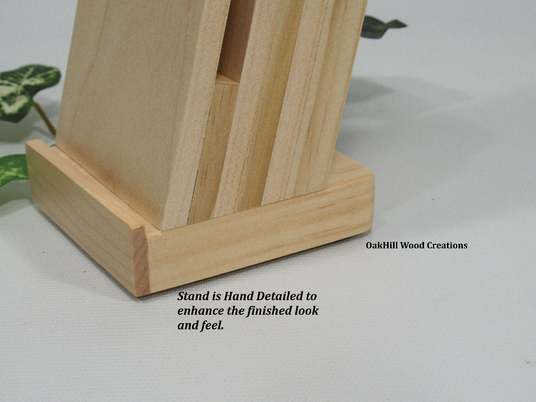 This Display Stand is made from Hard Maple and Select Pine. It is then sanded smooth on all surfaces and finished with two coats of clear Polyurethane.