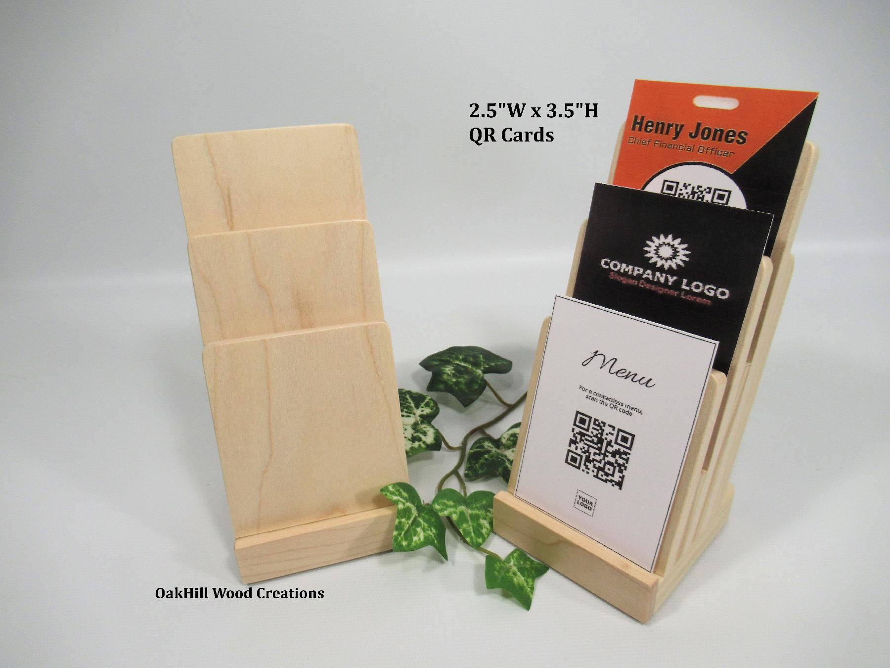 This Display Stand neatly holds 2.5”W x 3.5”H Lifetime Stat Cards, QR Cards, etc. with a 1.5” Reveal. The 2.75” wide Display Stand provides a .12” Hard Maple Wood border on both sides of your cards which acts as a frame and helps your cards stand out from the background, providing an attractive presentation.