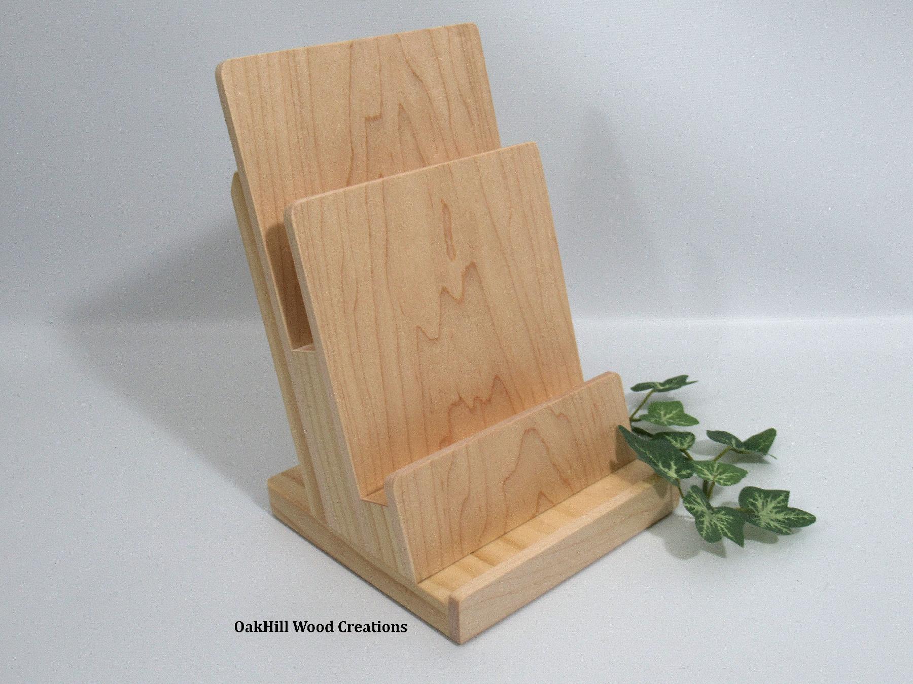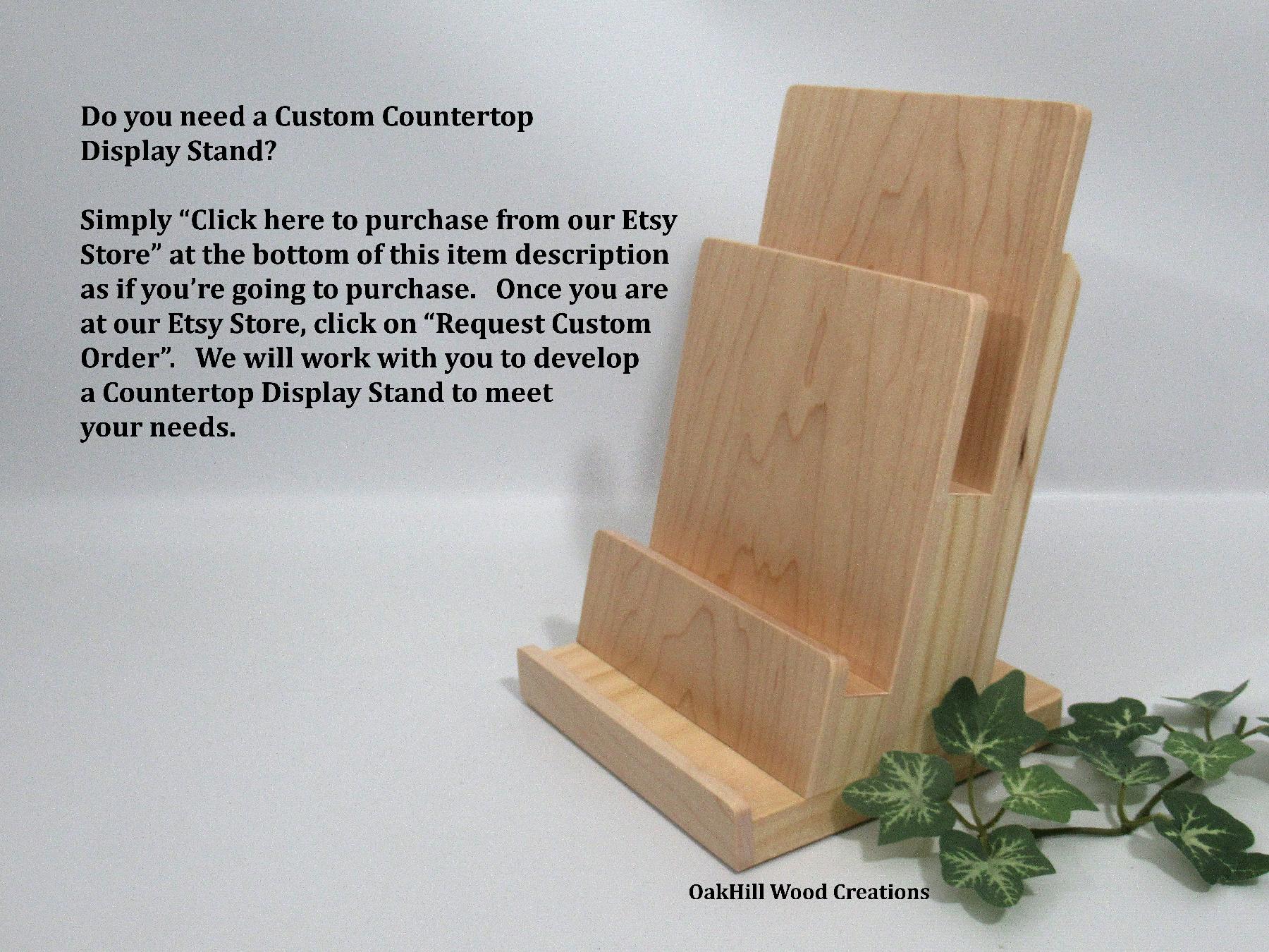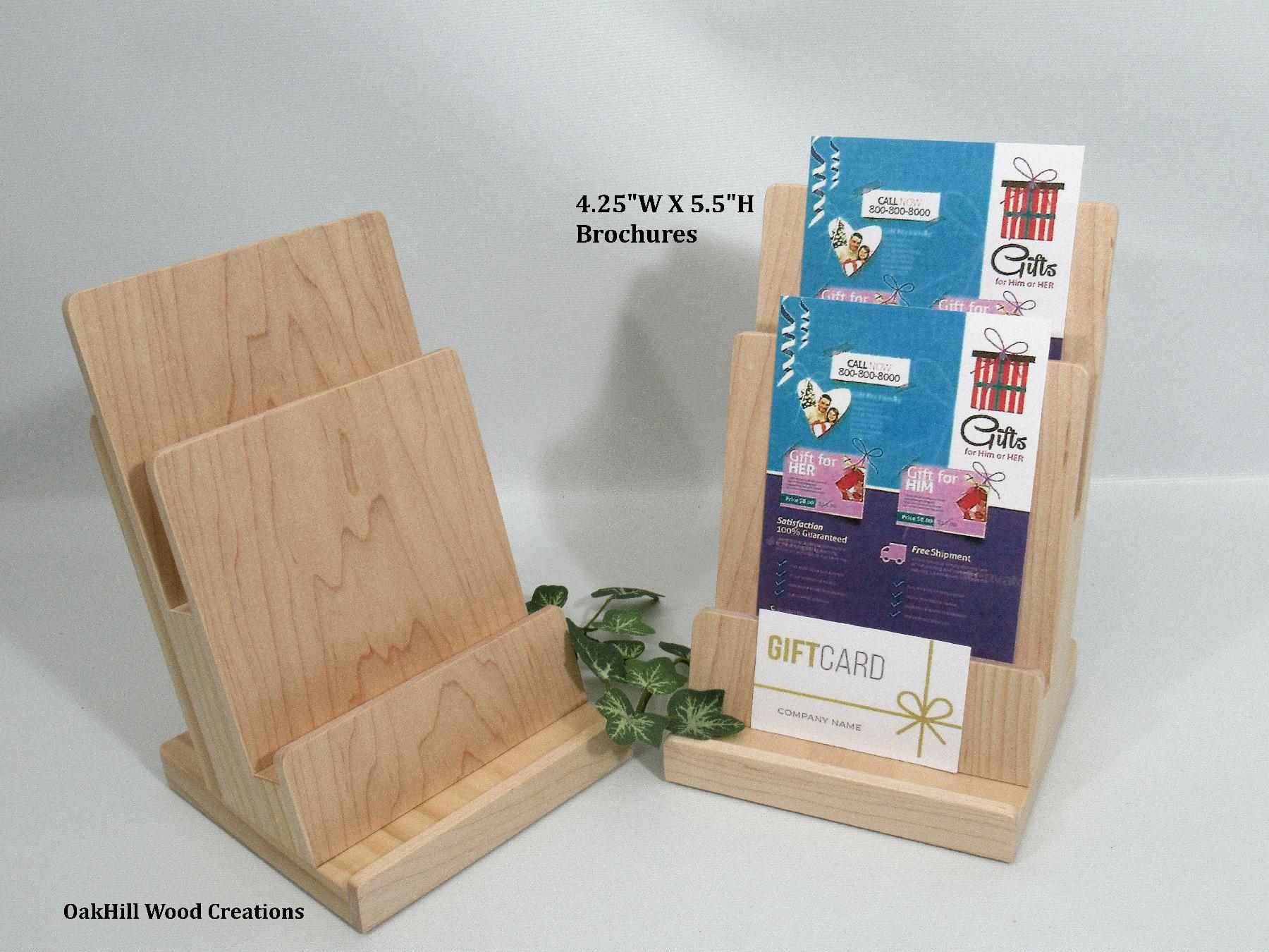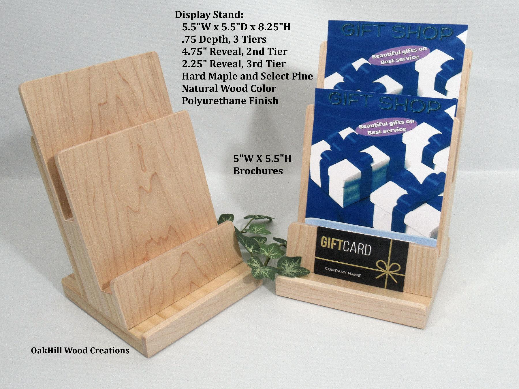 Showcase your gift cards and brochures with this beautifully handcrafted 3-tier wood display stand, designed to keep your countertop organized and your marketing materials front and center.