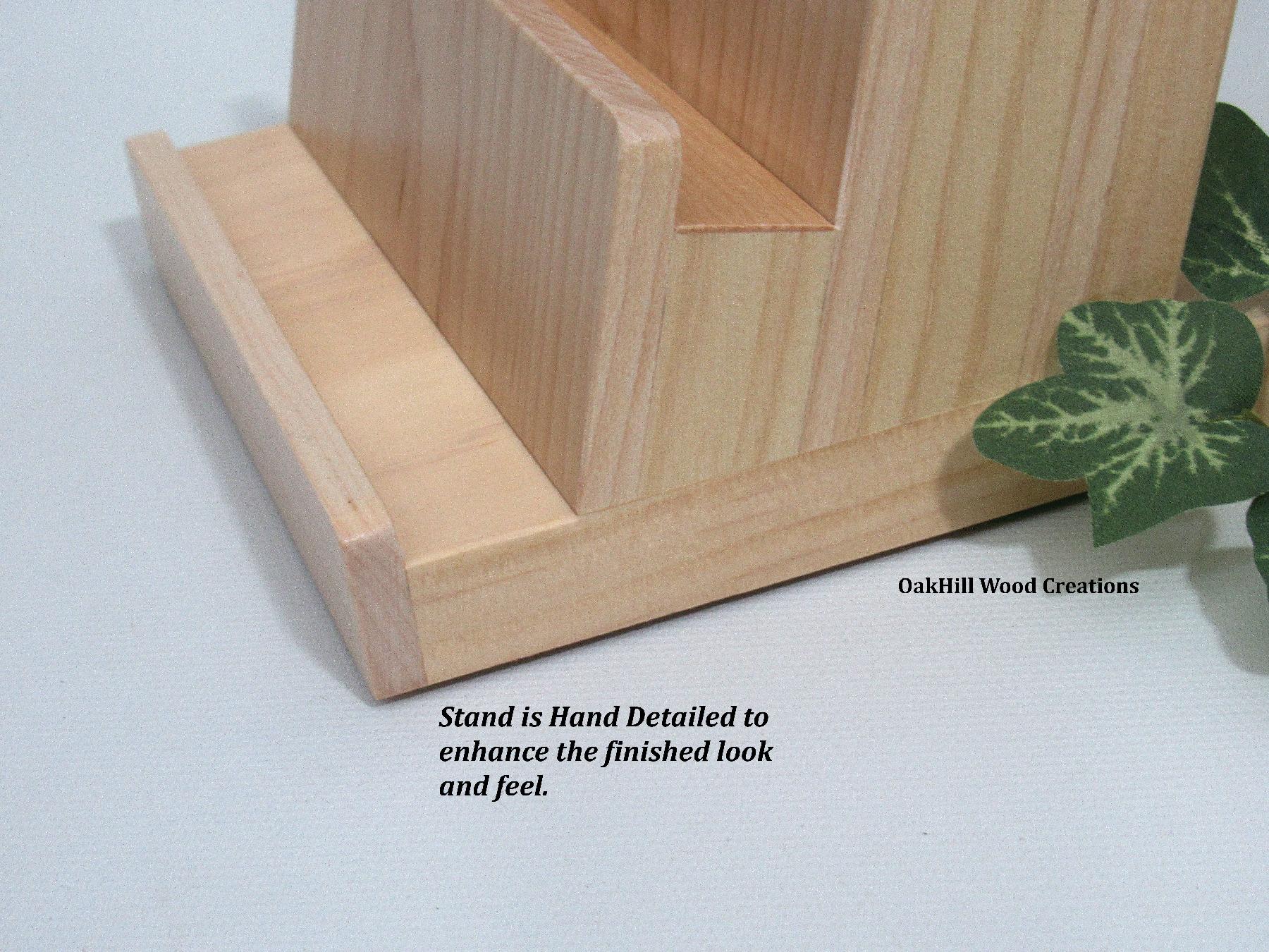 Made from Hard Maple and Select Pine, this piece features a natural wood finish with two coats of polyurethane for a rich, smooth surface that enhances the natural grain—creating the perfect backdrop for your literature and gift cards.