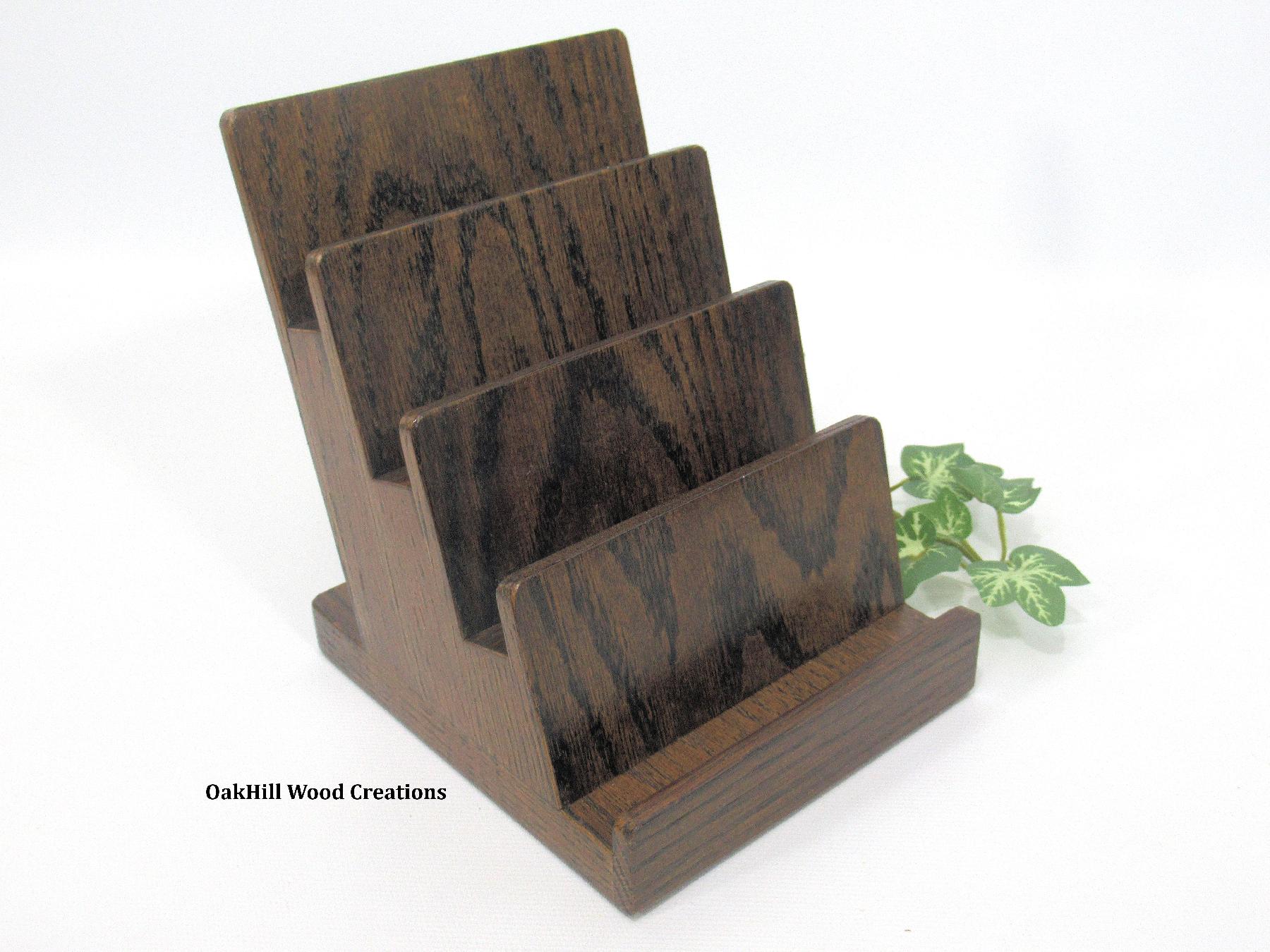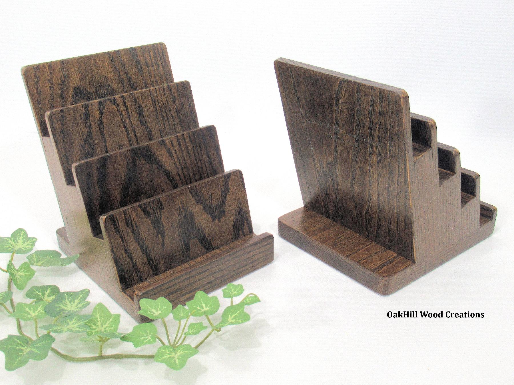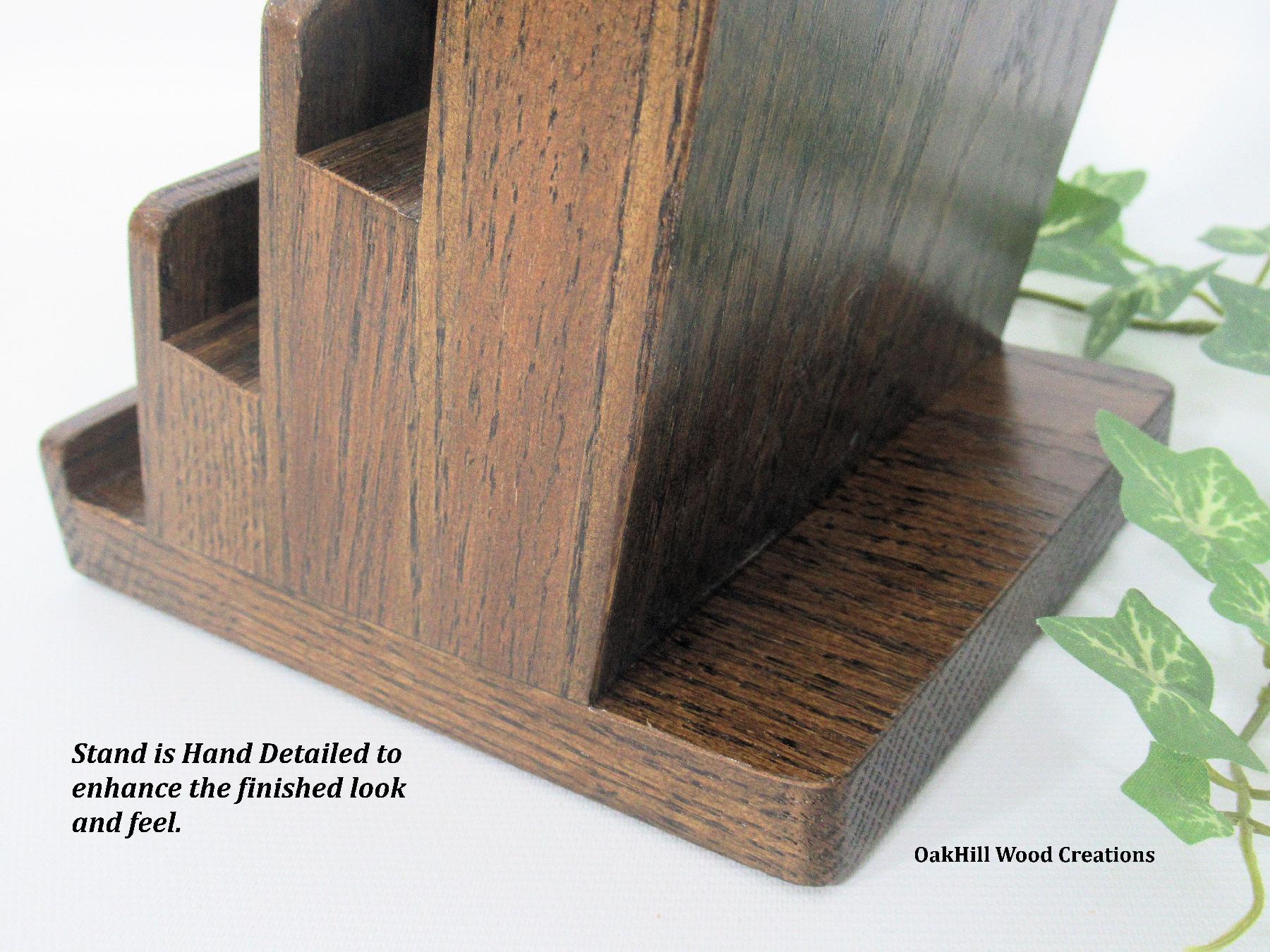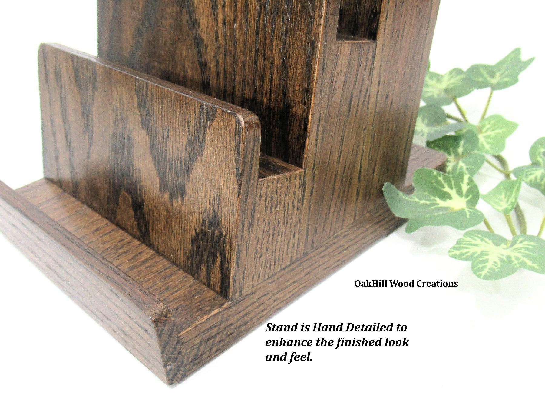 Crafted from solid oak wood, this display stand features a rich Jacobean stain and is sealed with two coats of durable polyurethane, enhancing the natural wood grain for a warm, professional finish. The result is a refined backdrop that highlights your gift cards and envelopes beautifully.