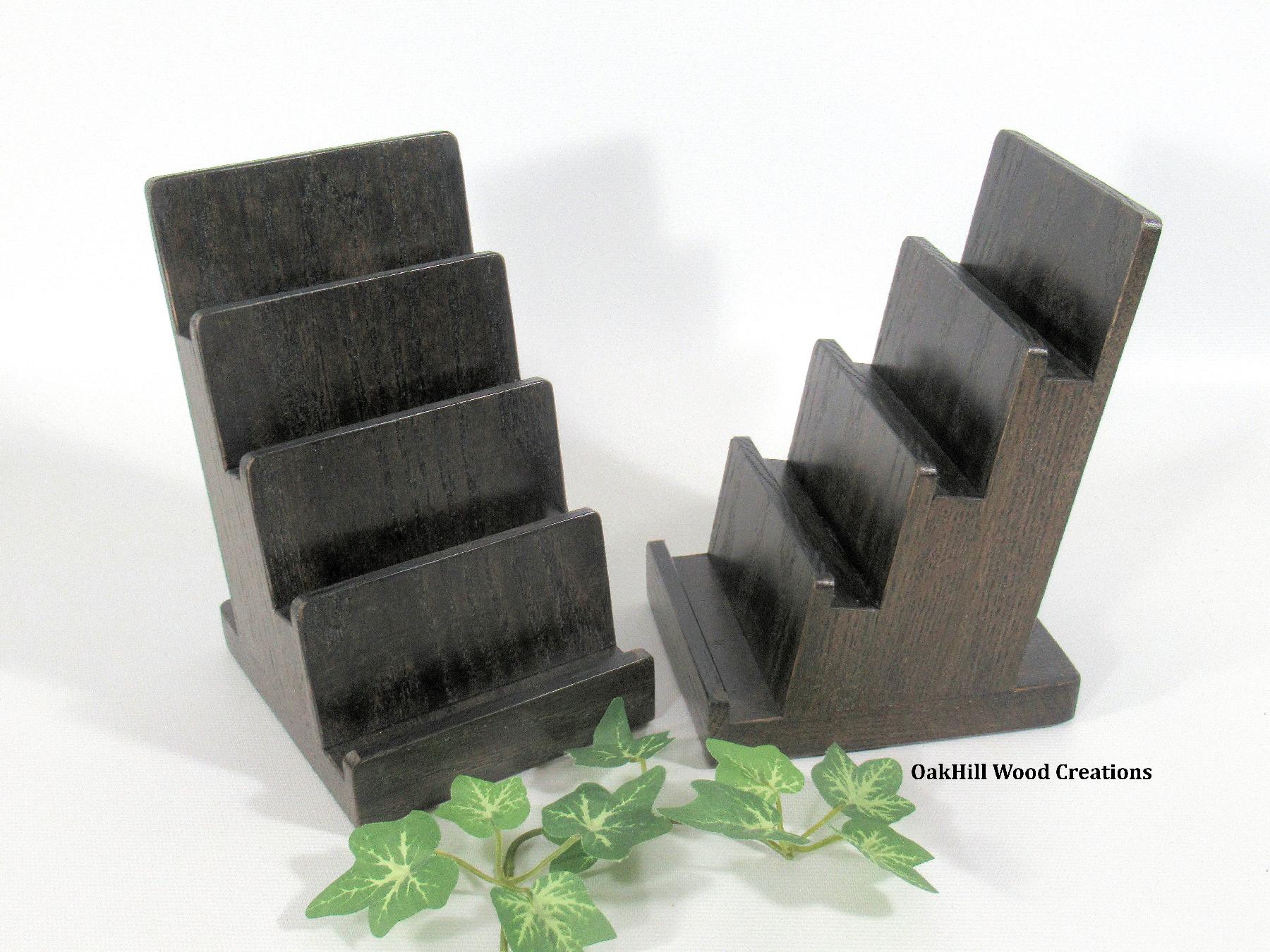 Office Desk Business Card Holder – Handcrafted 4 Tier Solid Oak Ebony Stand