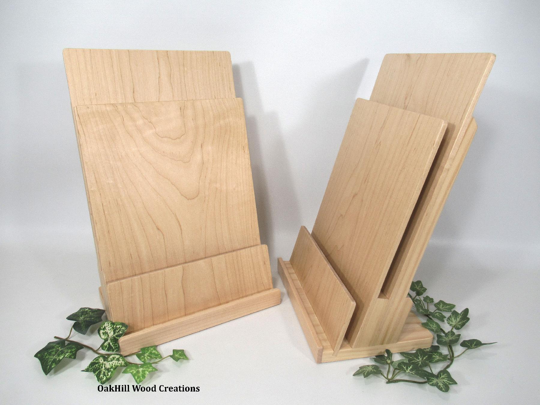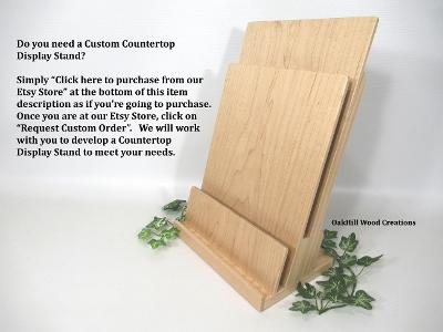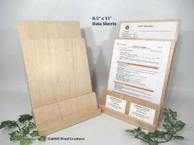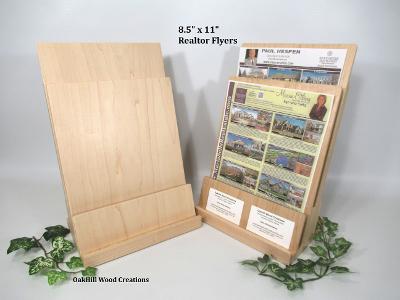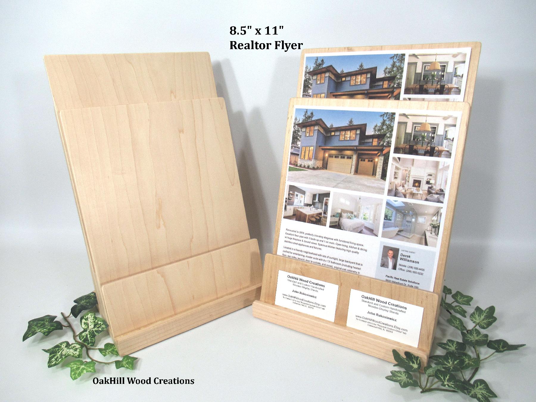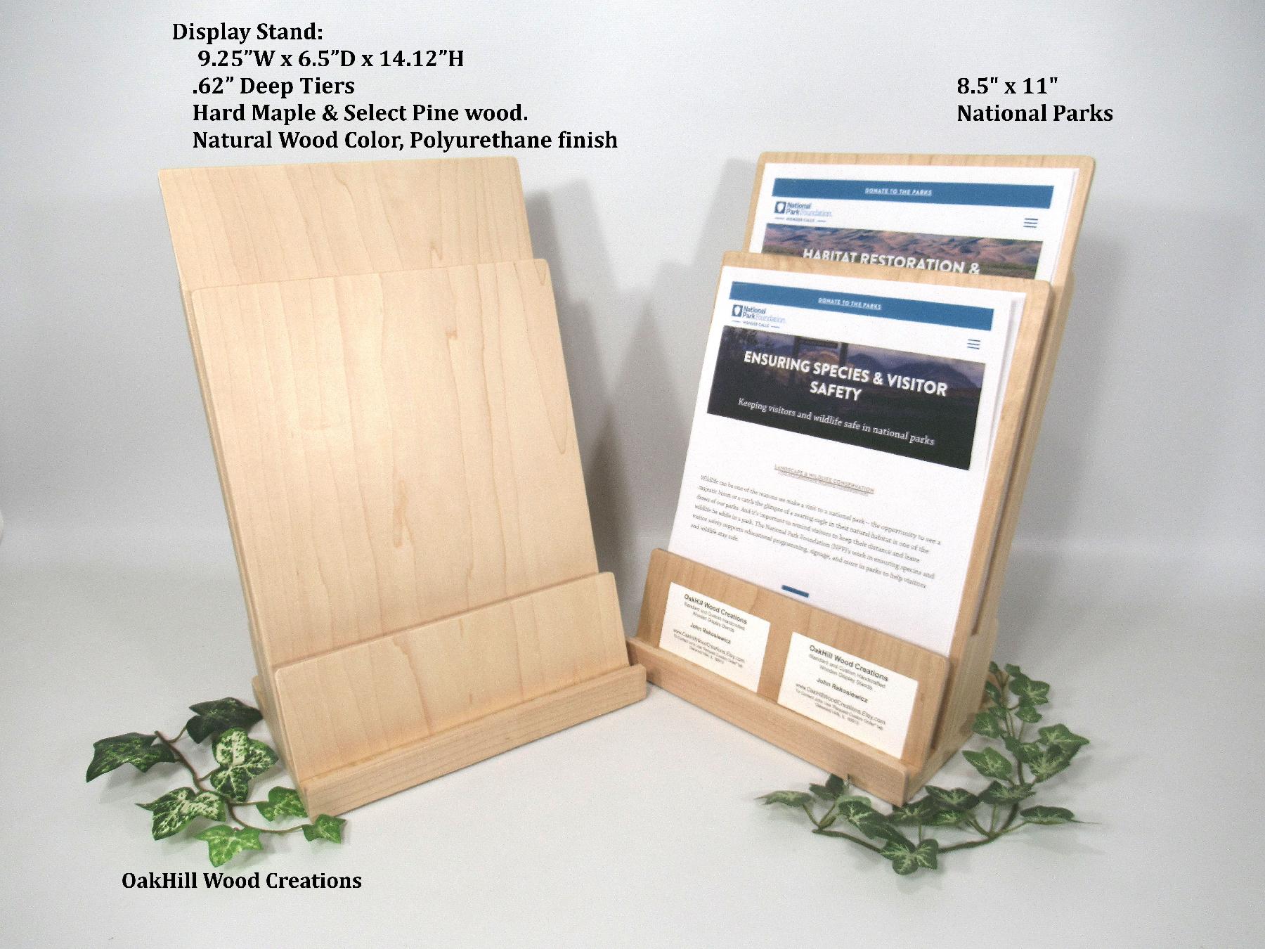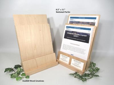 Showcase brochures and business cards together in one handcrafted solid wood display.