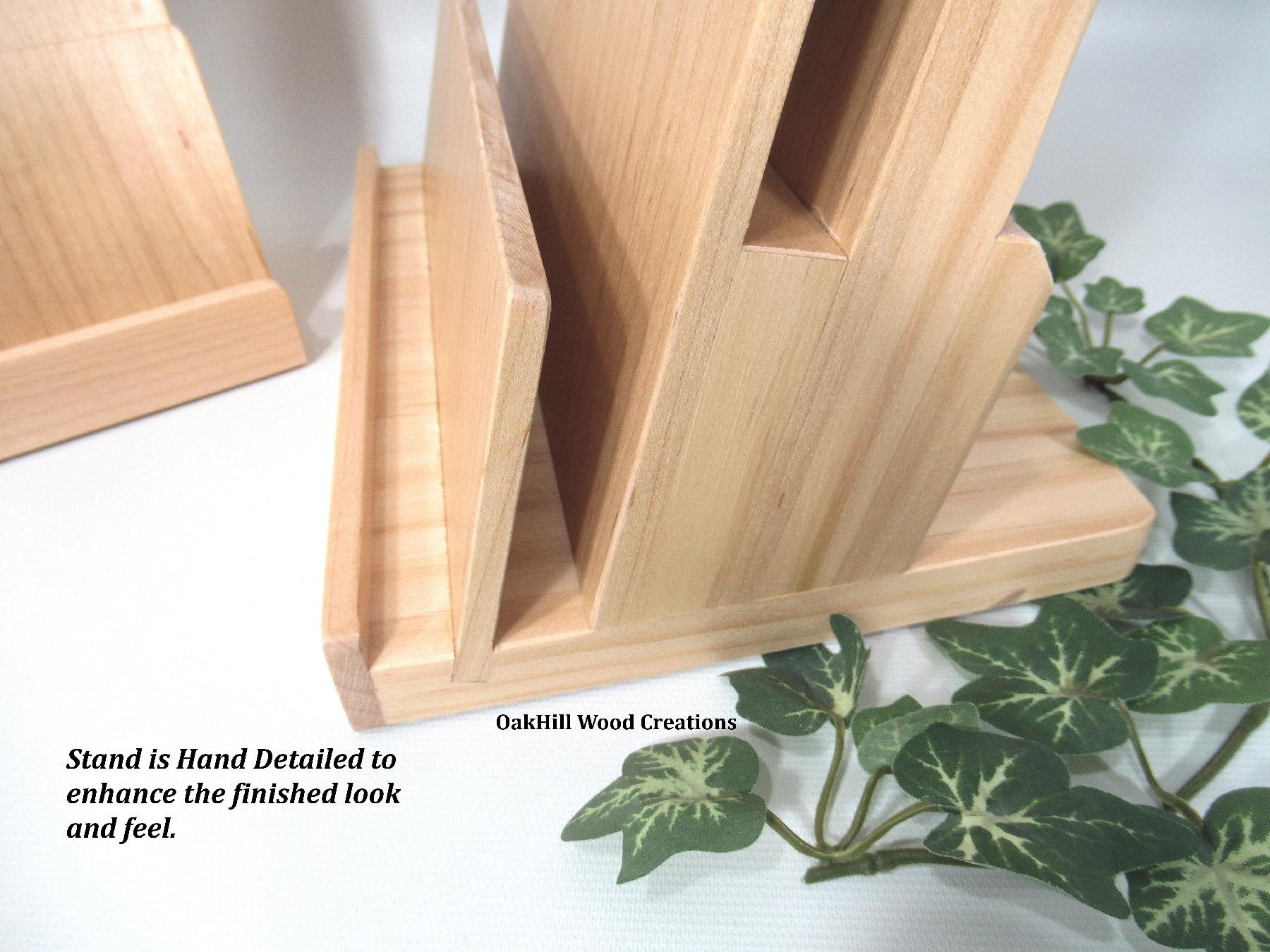 Handcrafted from Solid Hard Maple and Select Pine, this stand features a natural wood finish sealed with two coats of high-quality polyurethane. The clear finish enhances the natural grain while providing durable, long-lasting protection. Rubber pads on the bottom help safeguard your counters and desktops.